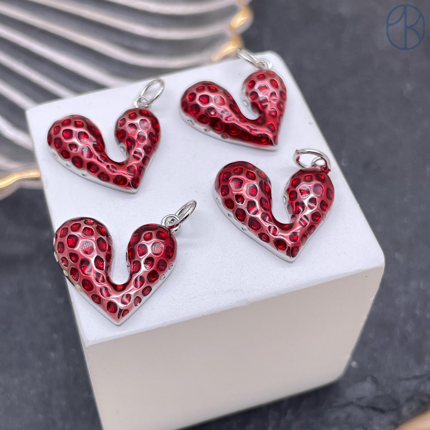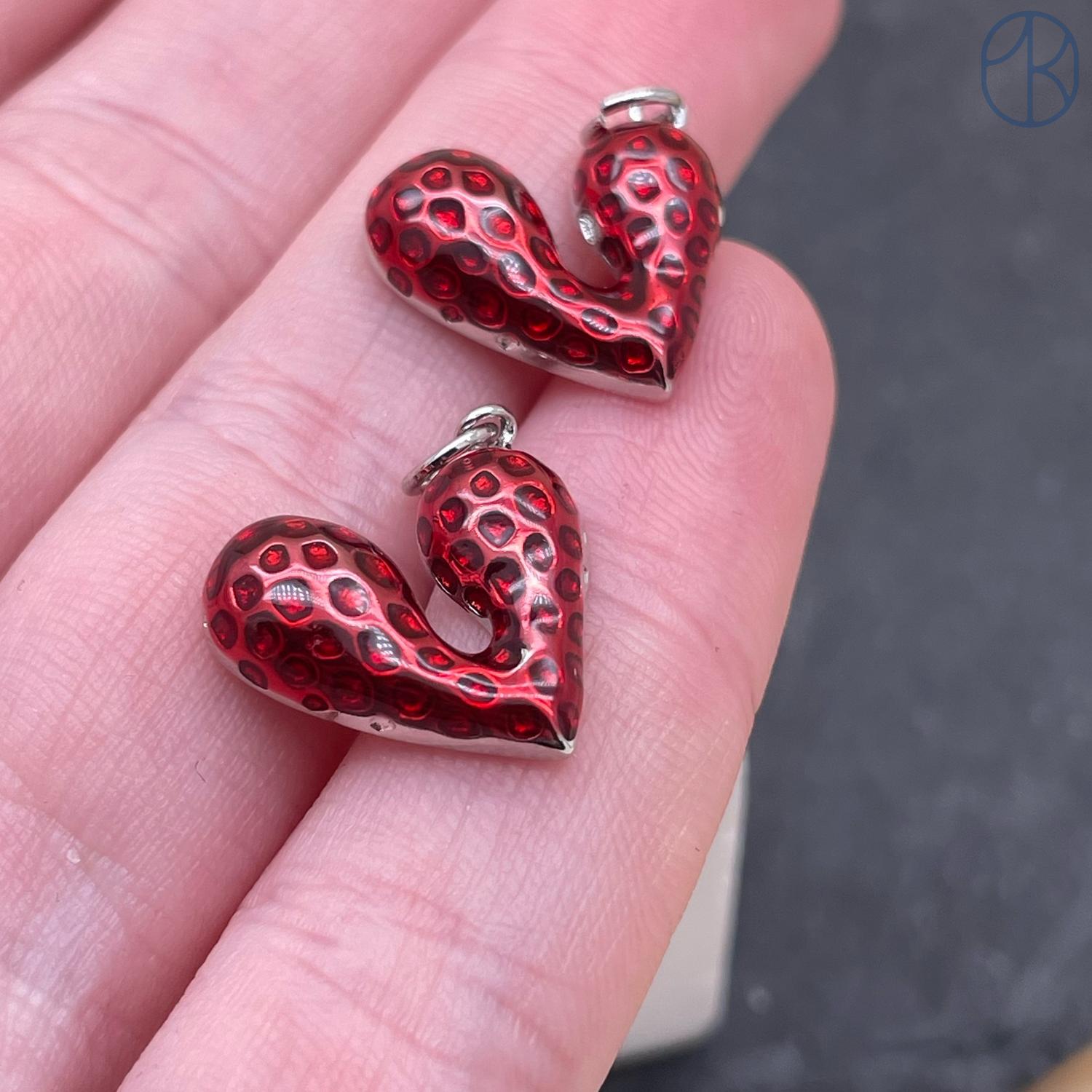 Подвеска сердце красная эмаль, цвет серебро 16 мм