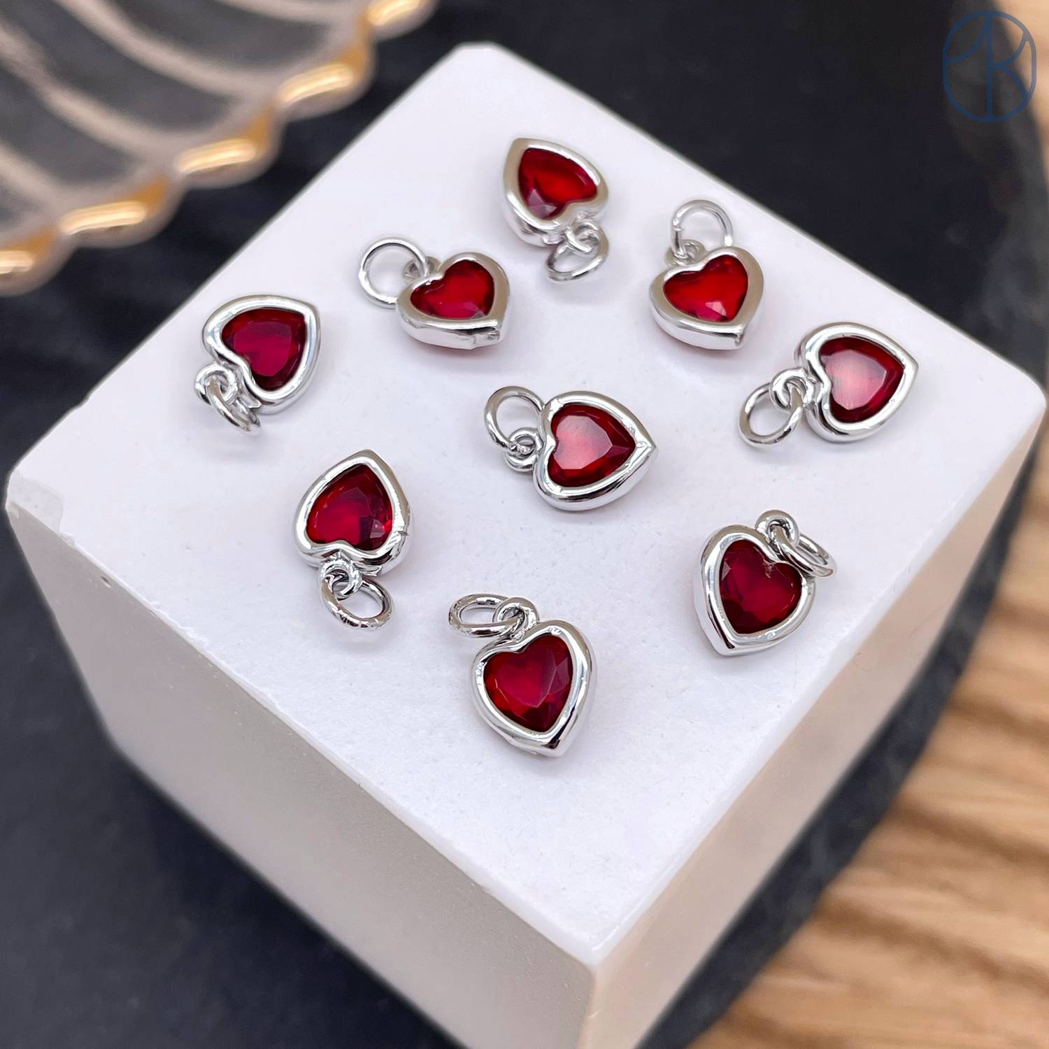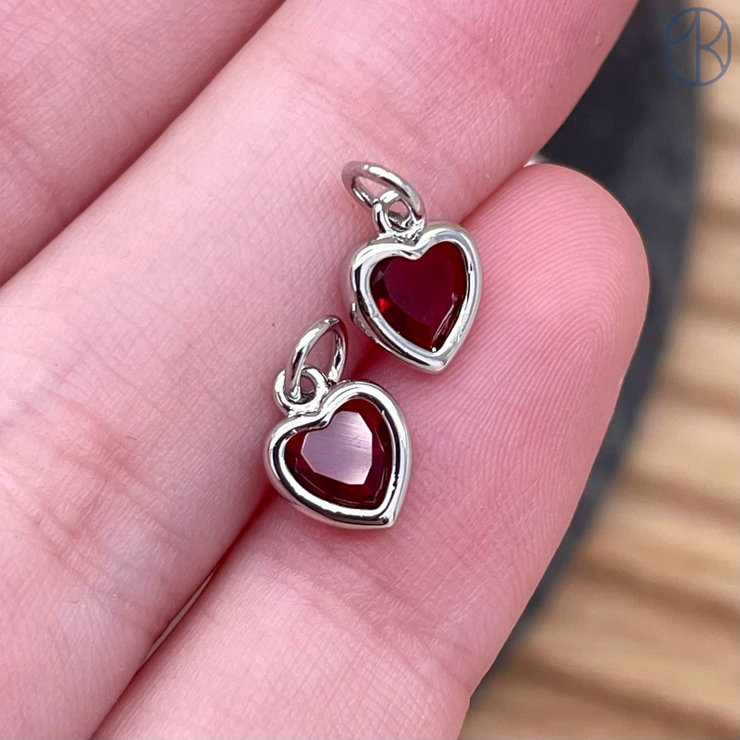 Подвеска сердце красный циркон, цвет серебро 6х8 мм