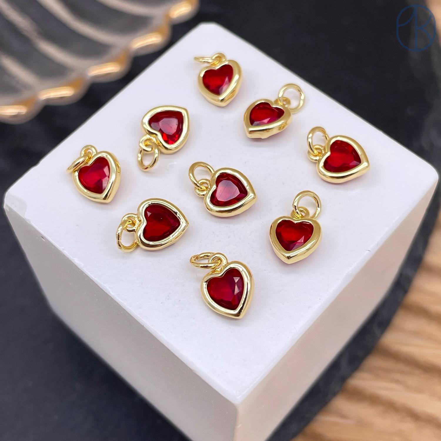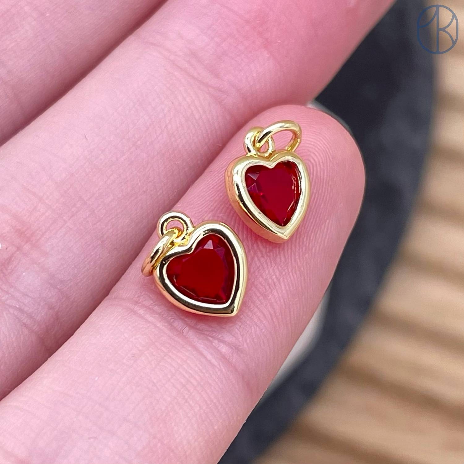 Подвеска сердце красный циркон, цвет золото 6х8 мм