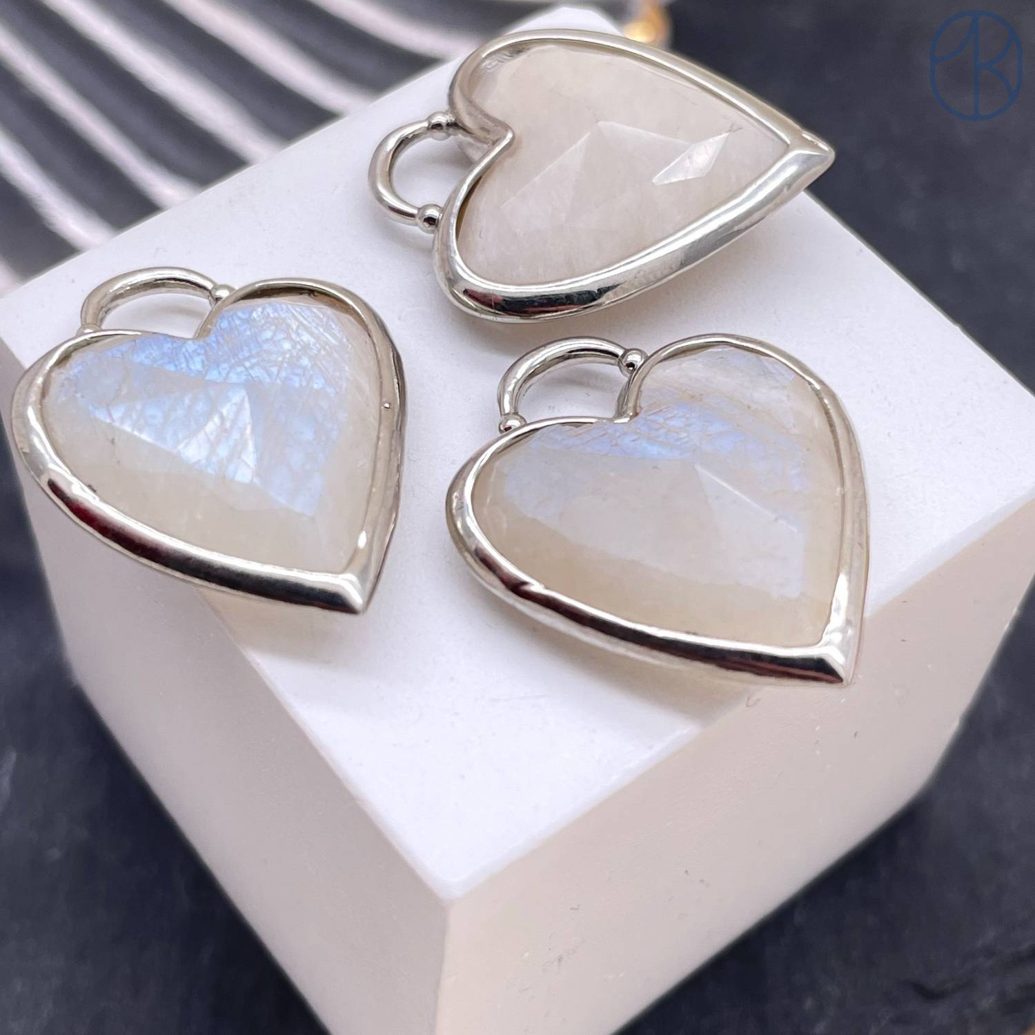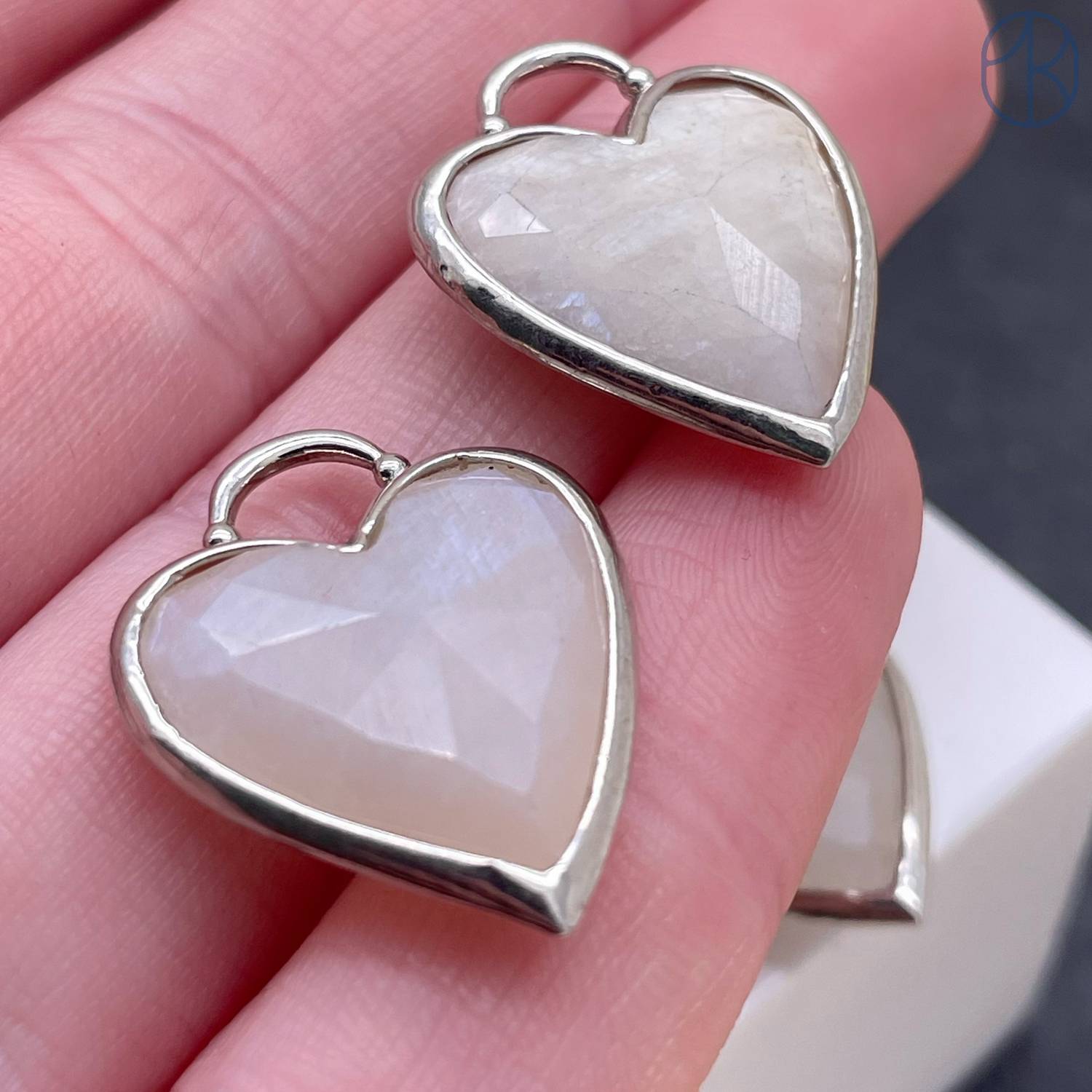 Подвеска сердце лунный камень, цвет серебро 20х20