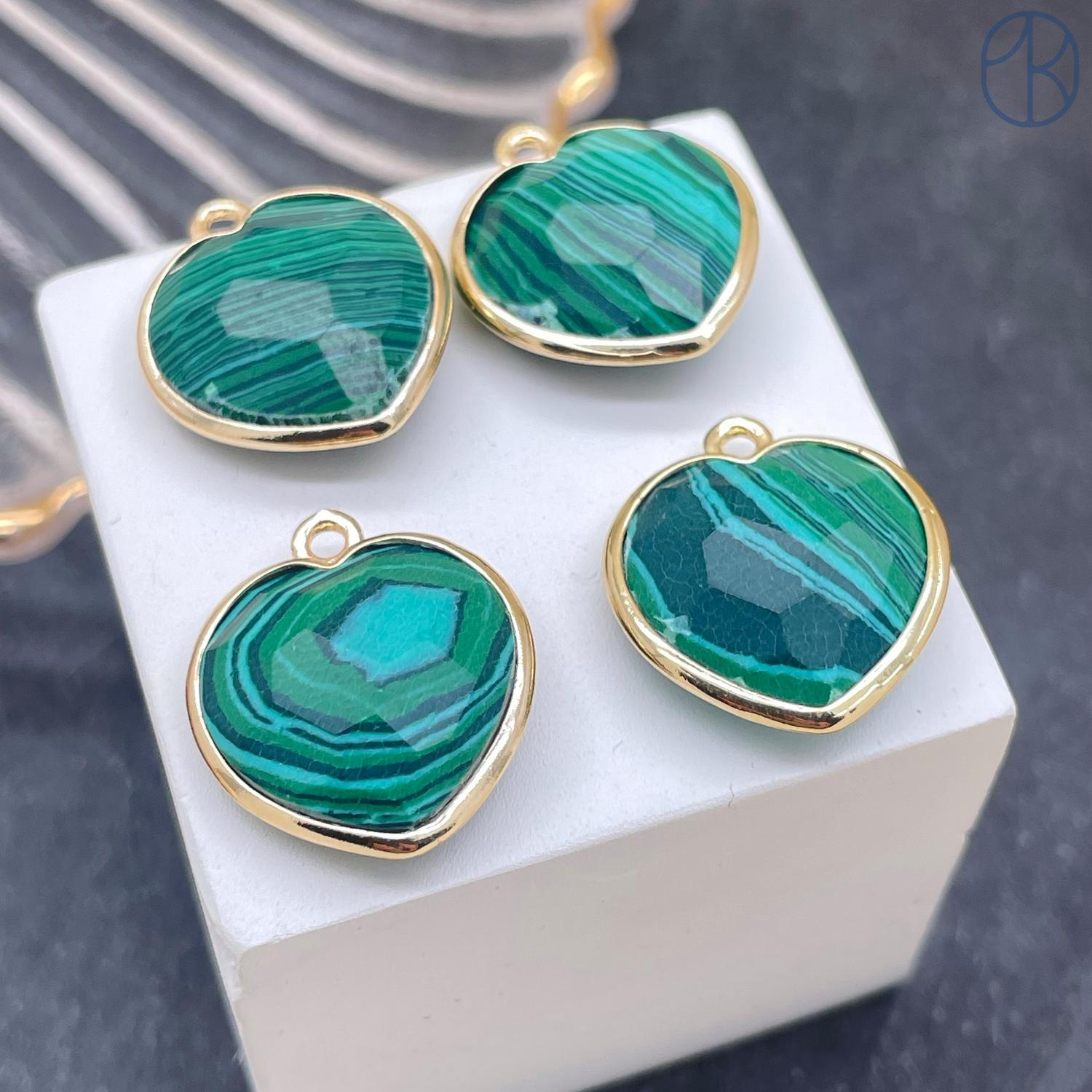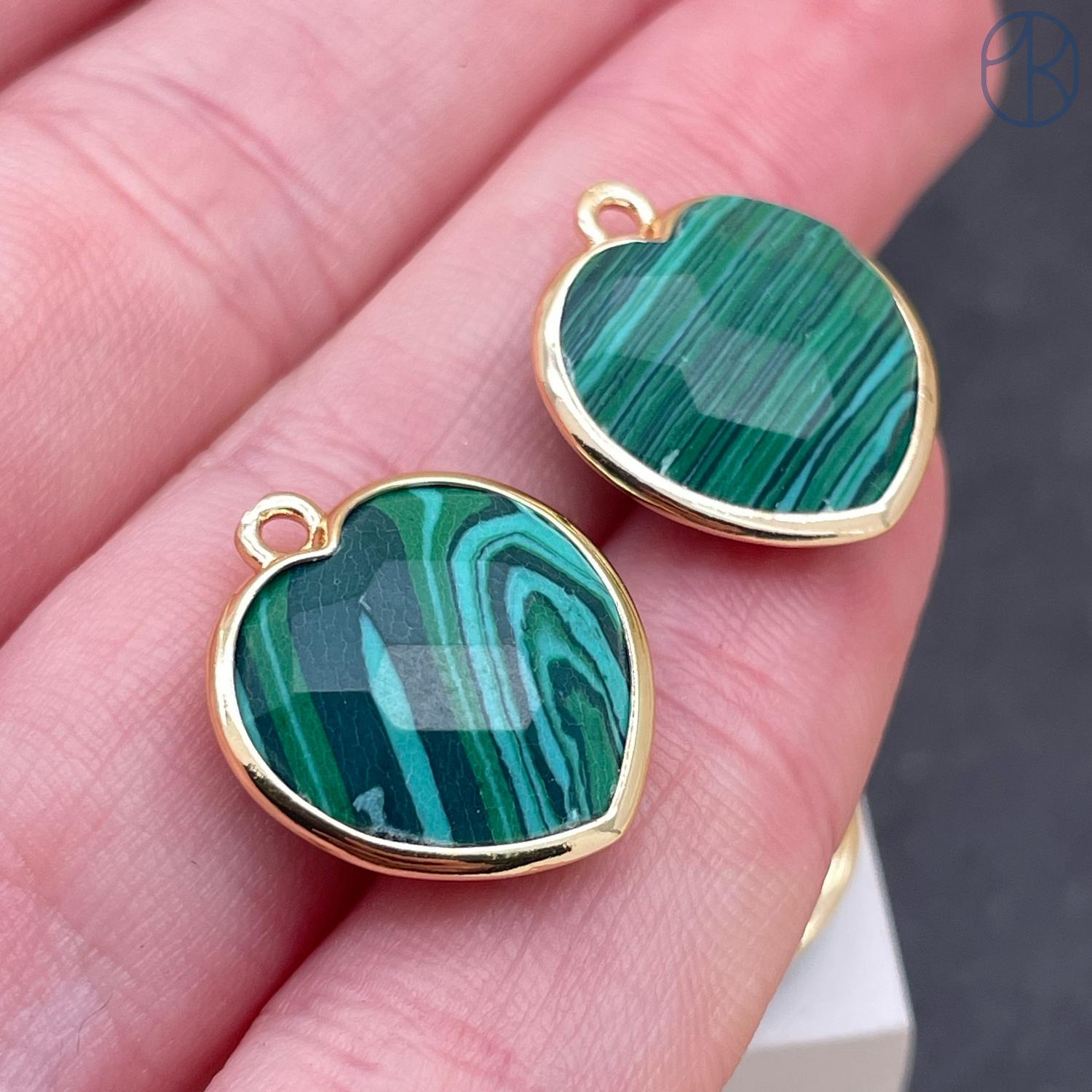 Подвеска сердце малахит (имитация), цвет золото 16х18 мм