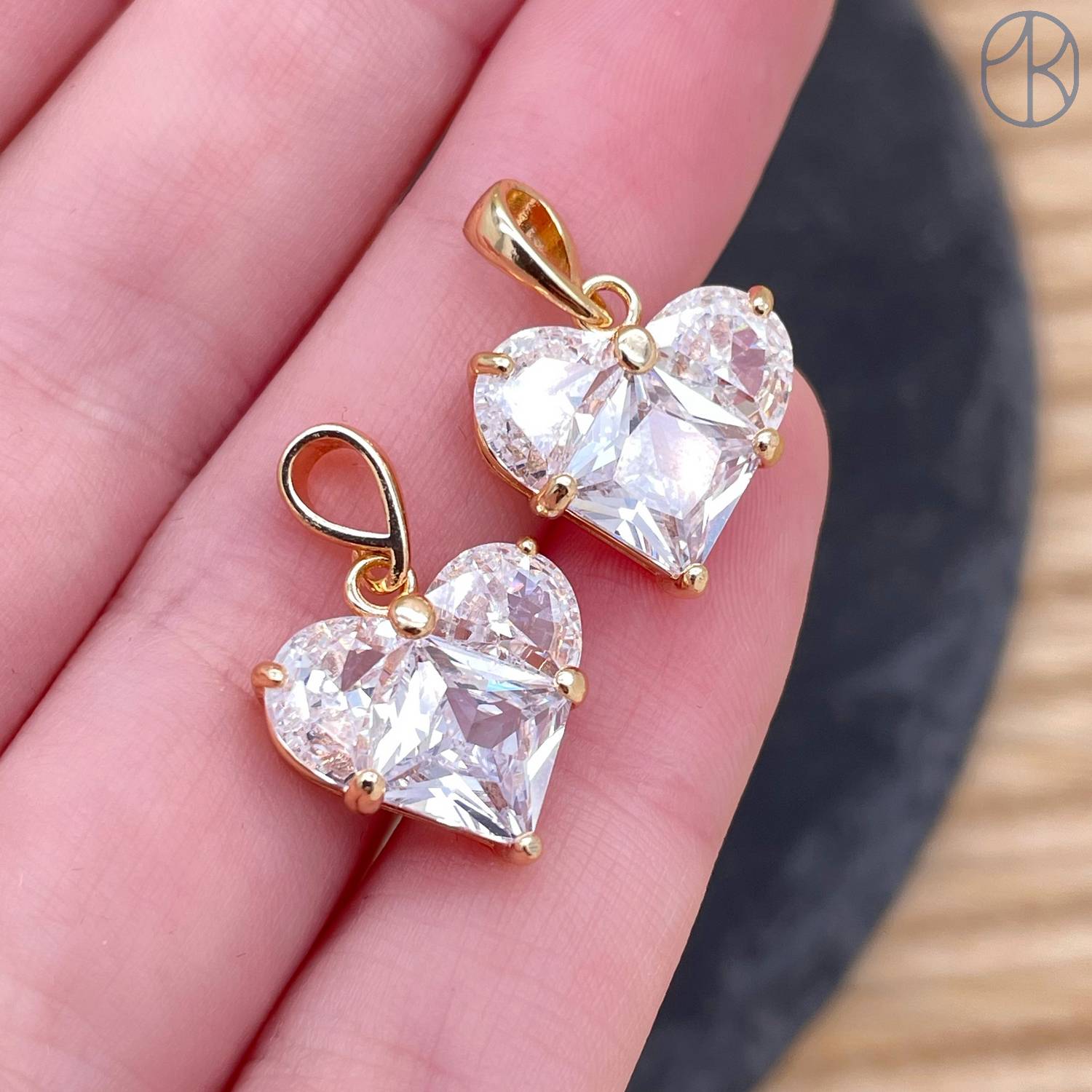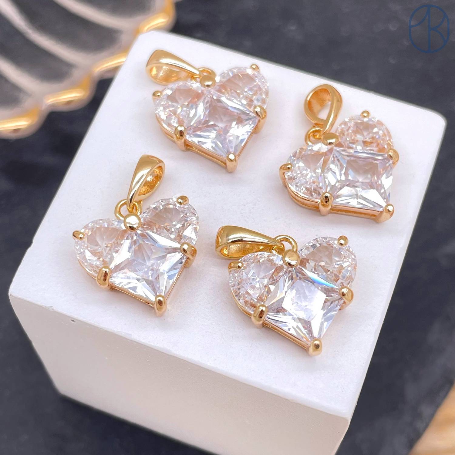 Подвеска сердце цирконы, цвет золото 14,5х14 мм