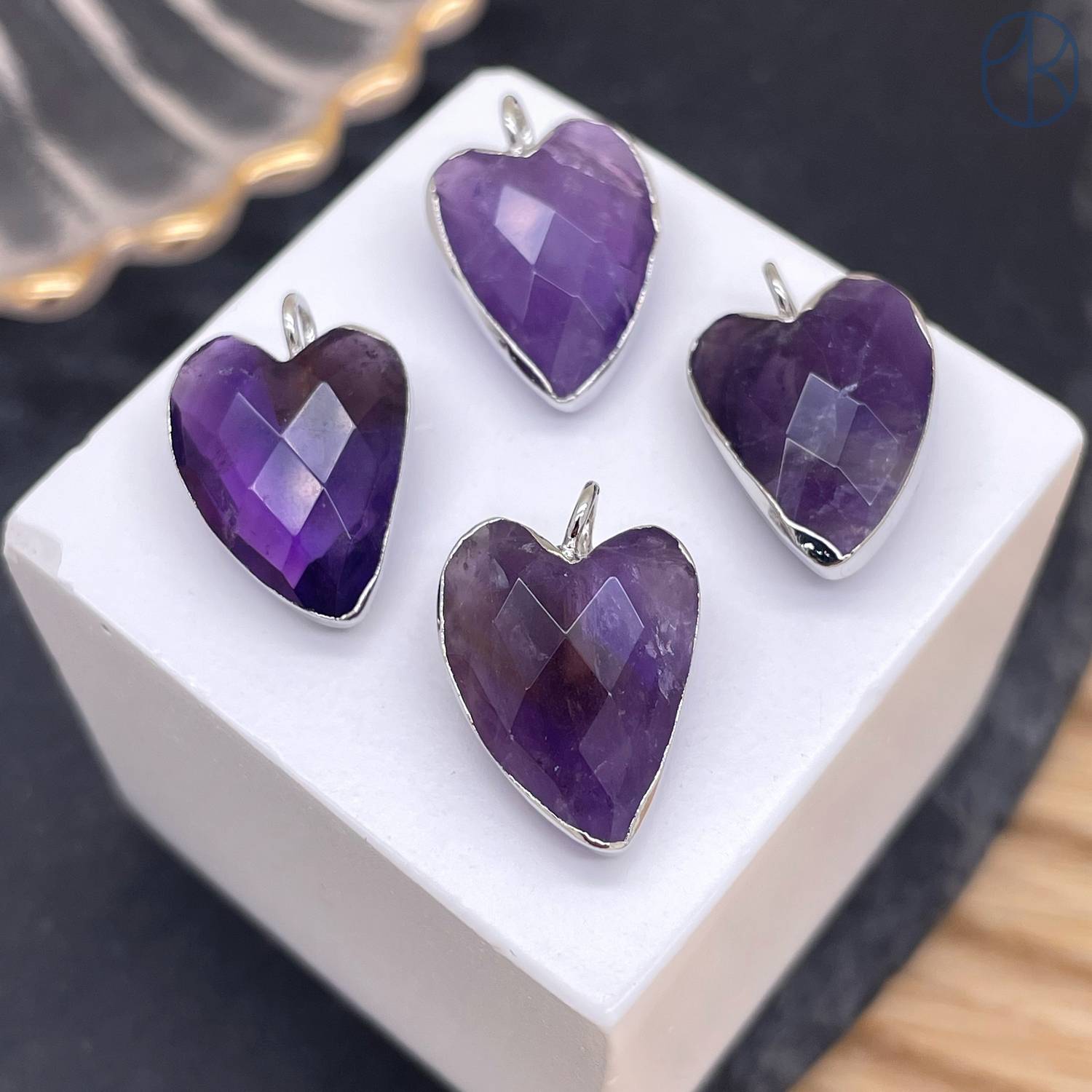 Подвеска сердце огранка аметист, цвет серебро 17х12 мм