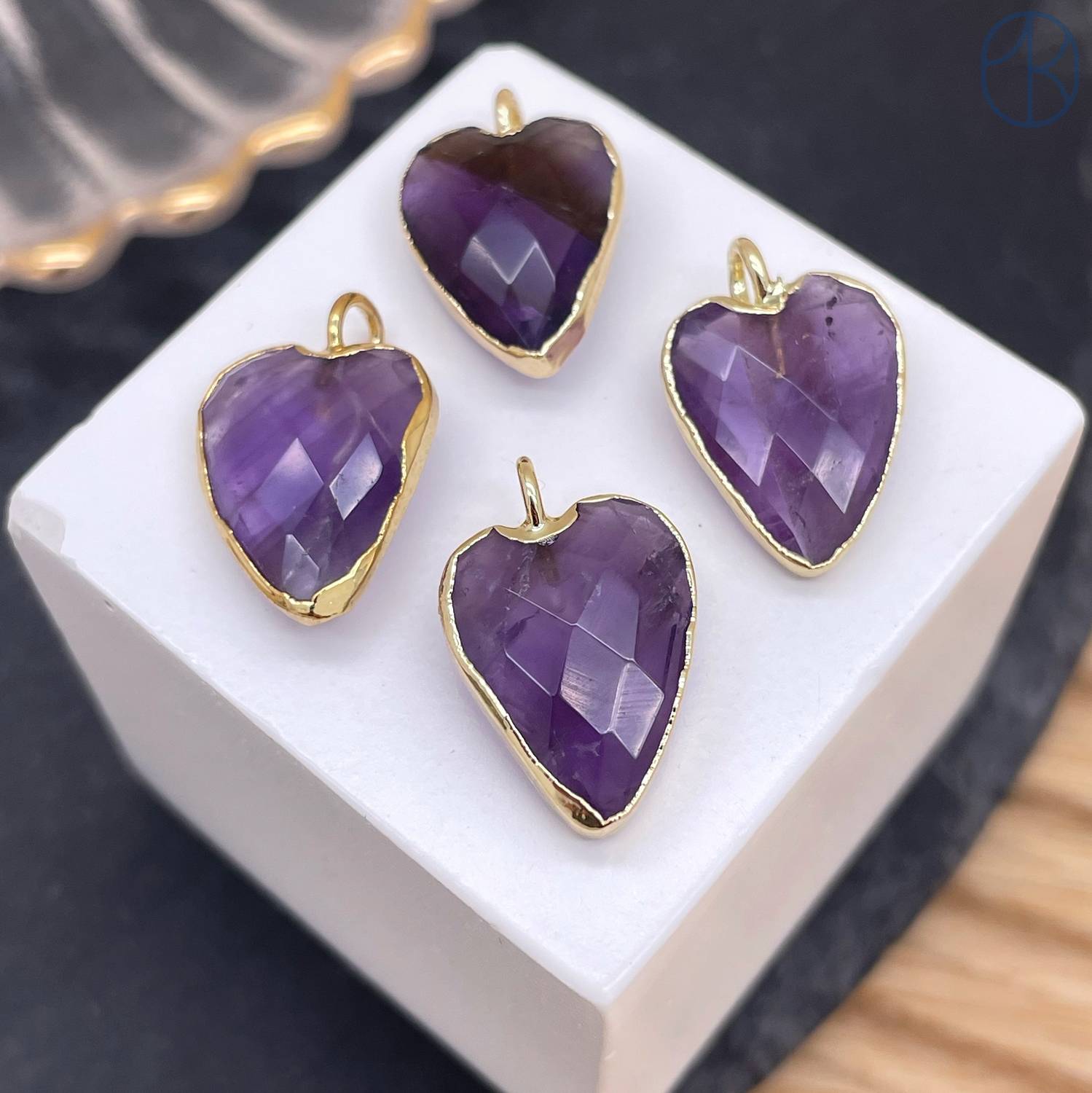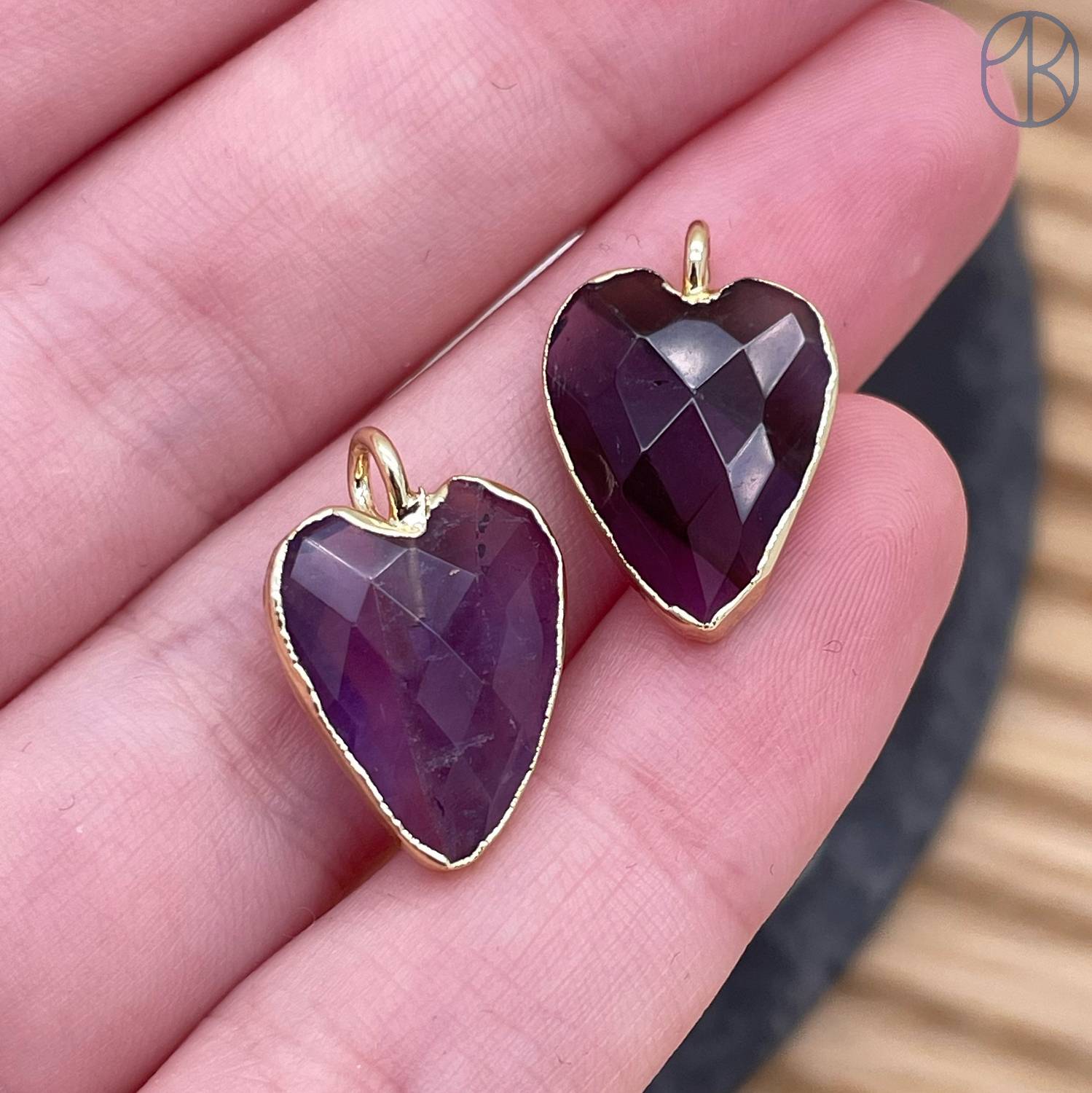 Подвеска сердце огранка аметист, цвет золото 17х12 мм