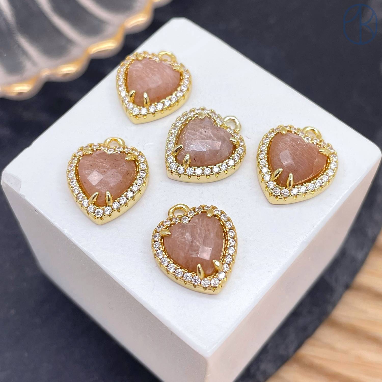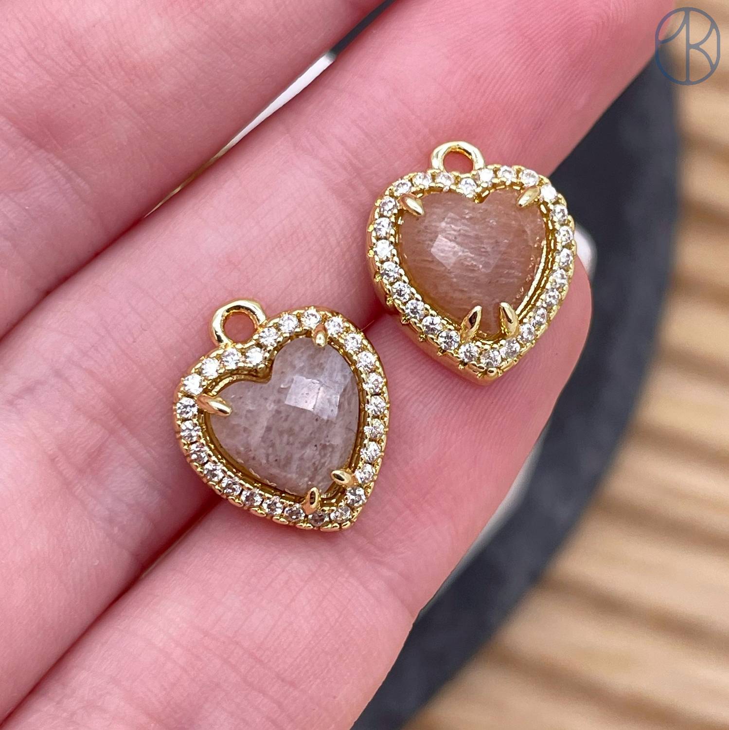 Подвеска сердце огранка солнечный камень, цвет золото 12 мм