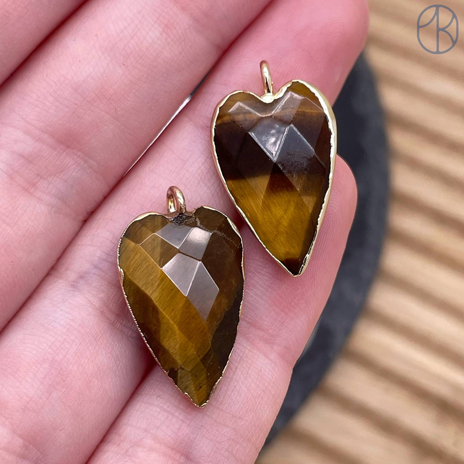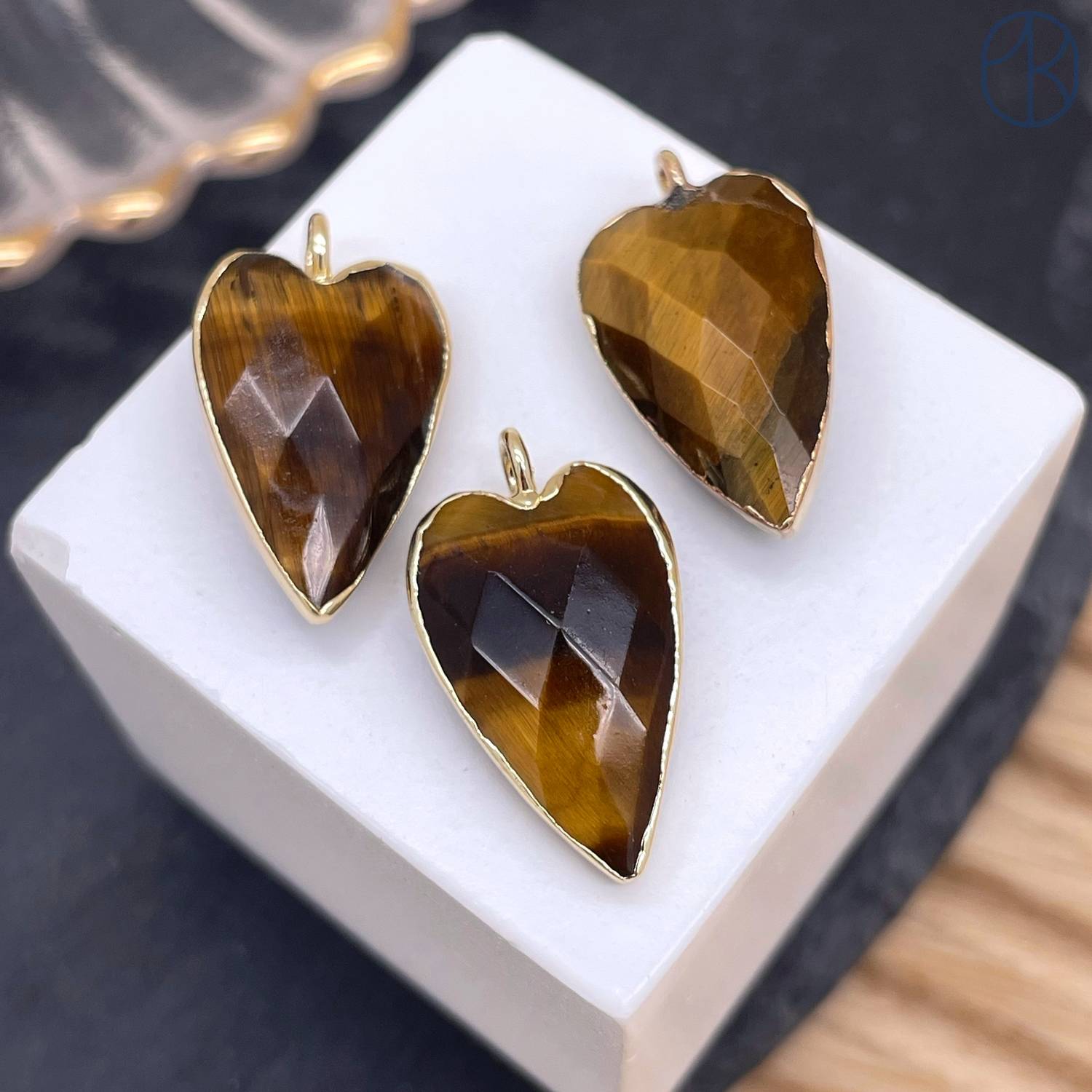 Подвеска сердце огранка тигровый глаз, цвет золото 18х13 мм