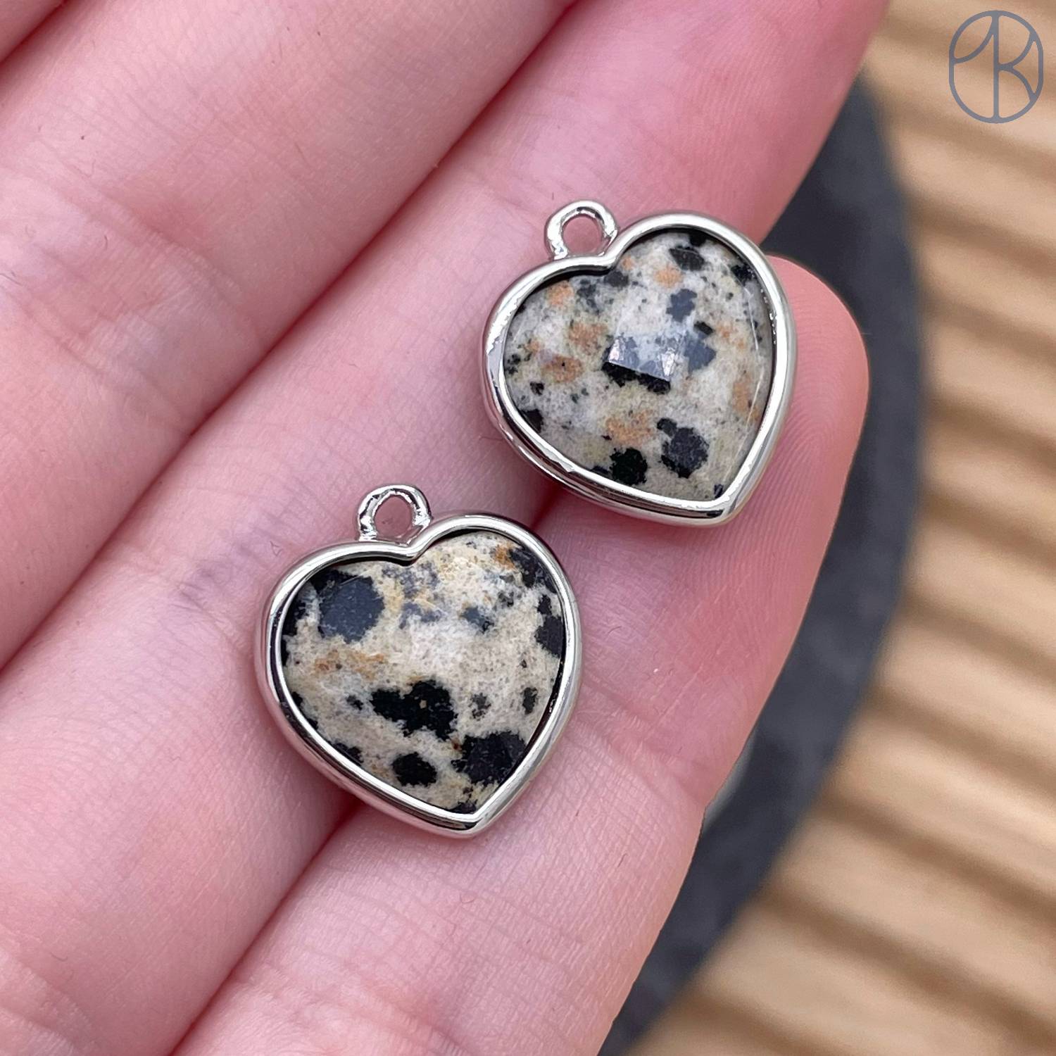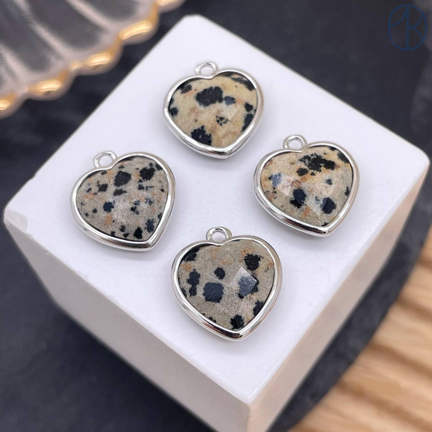 Подвеска сердце огранка яшма далматиновая, цвет серебро 13х15 мм