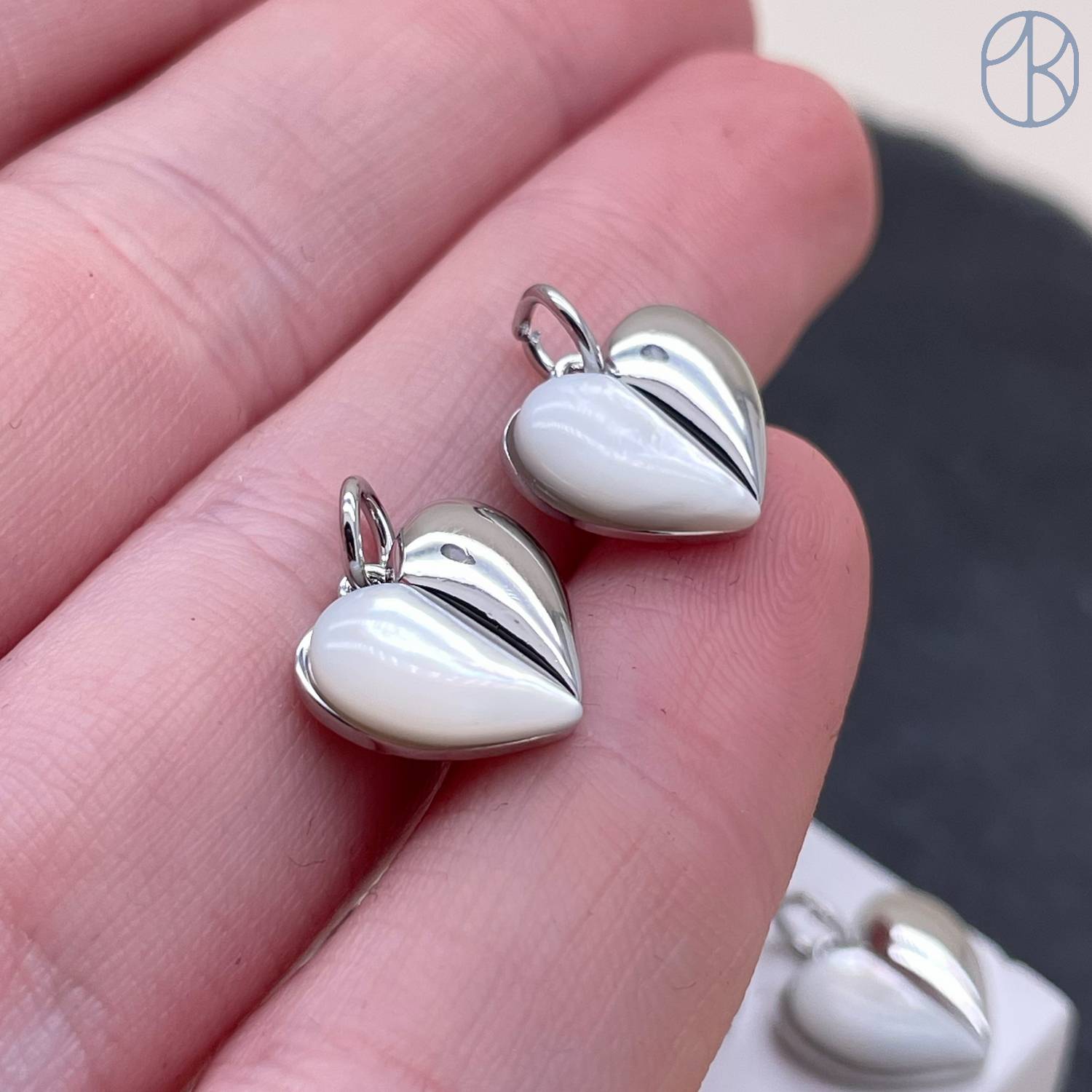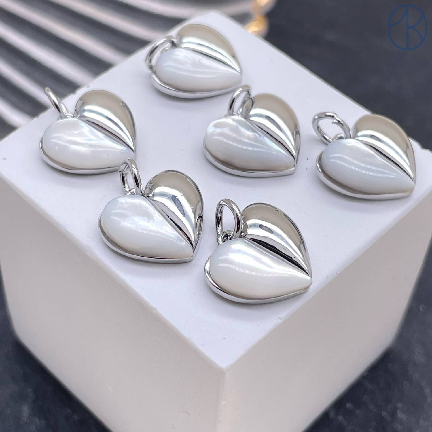 Подвеска сердце перламутр, цвет серебро 12 мм