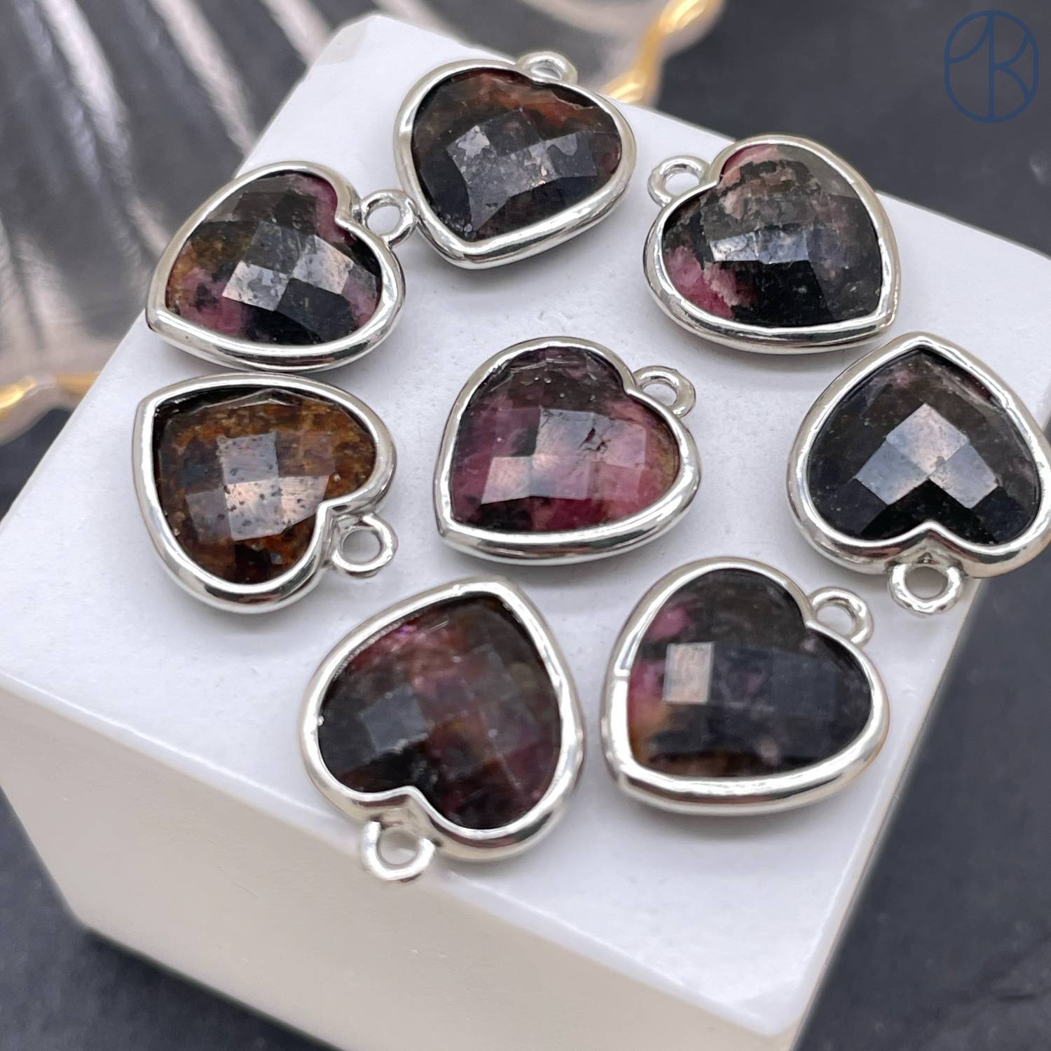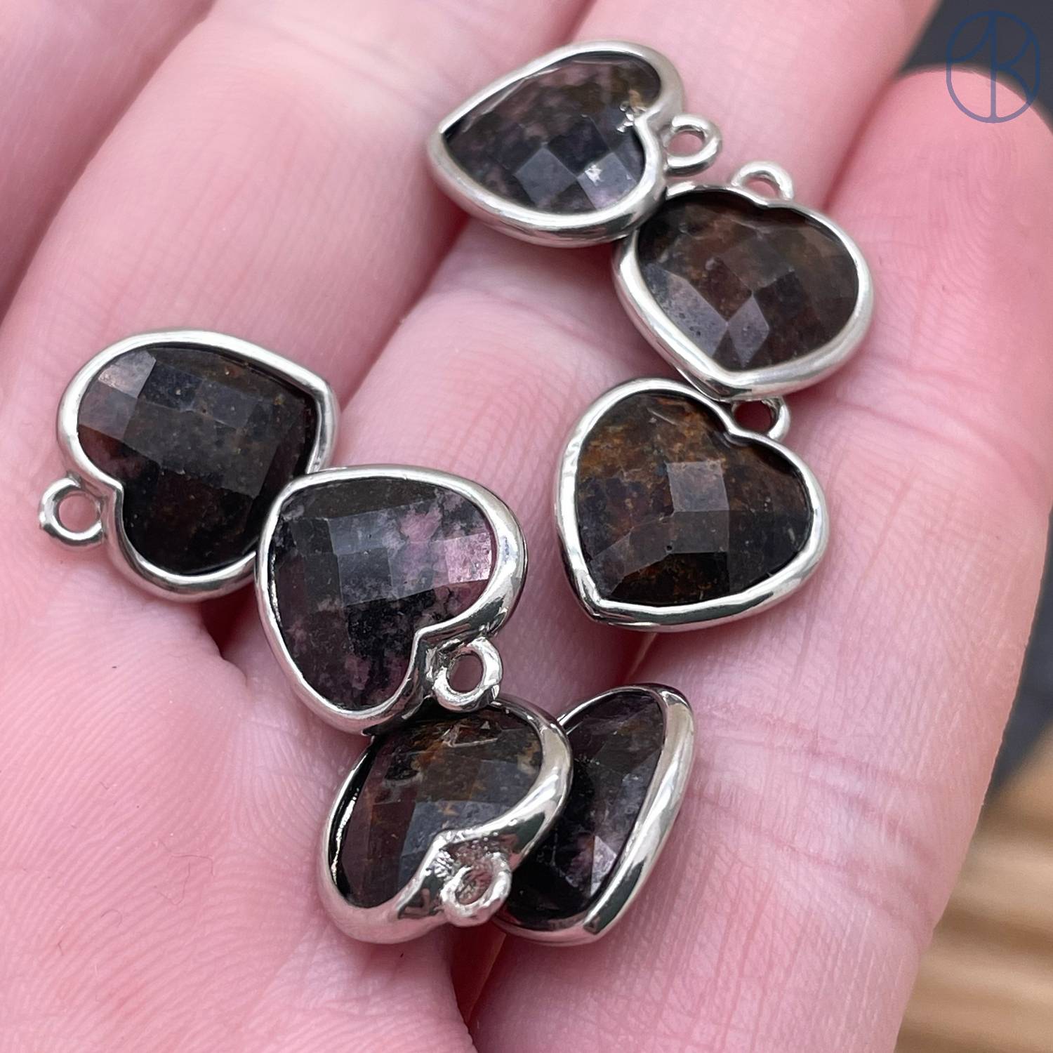 Подвеска сердце родонит черно-розовый, цвет серебро 12х13 мм