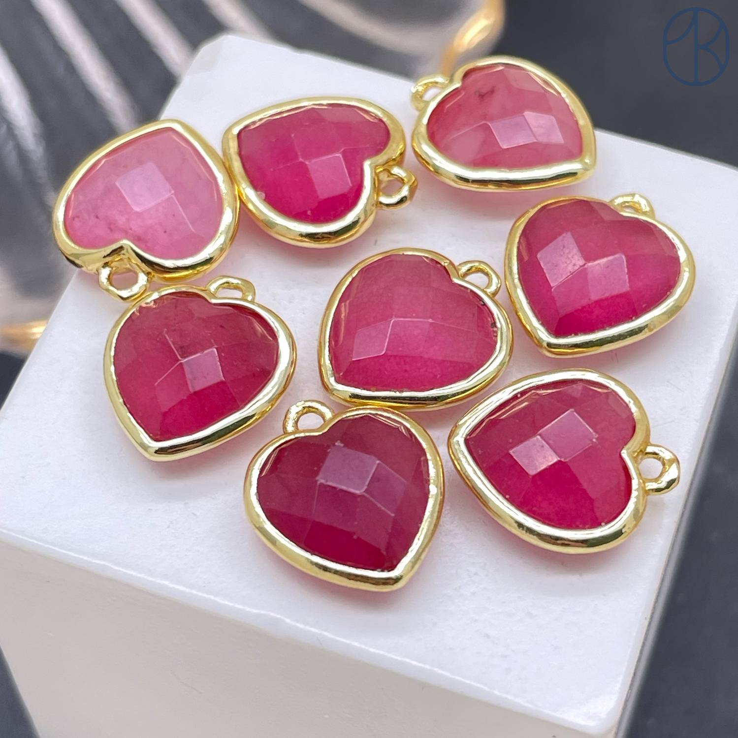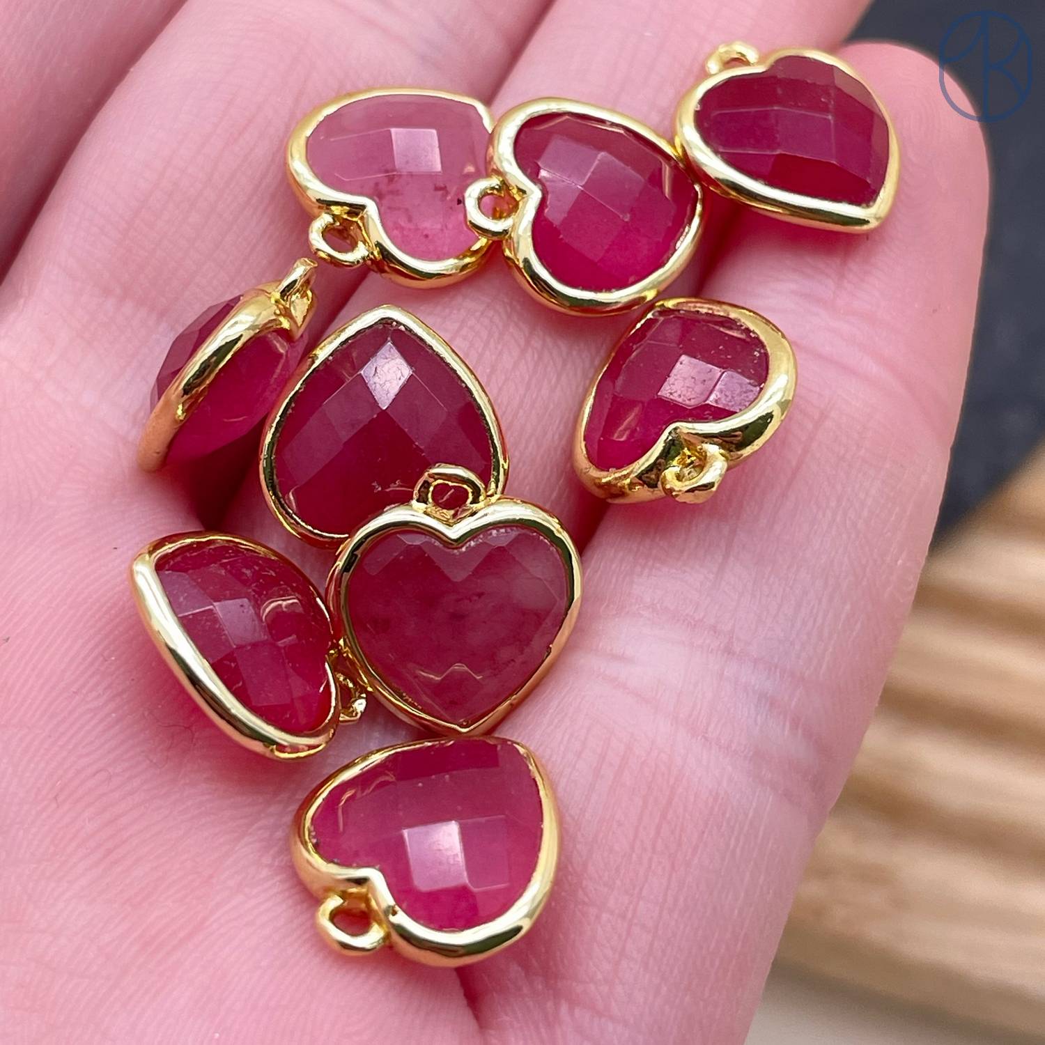 Подвеска сердце розовый кварц тонированный, цвет золото 12х13 мм
