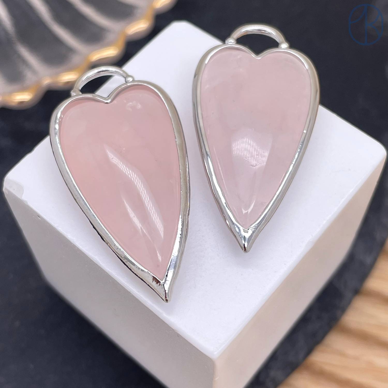 Подвеска сердце розовый кварц, цвет серебро 30х12 мм