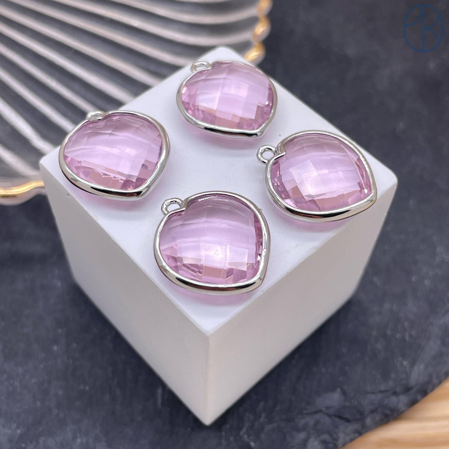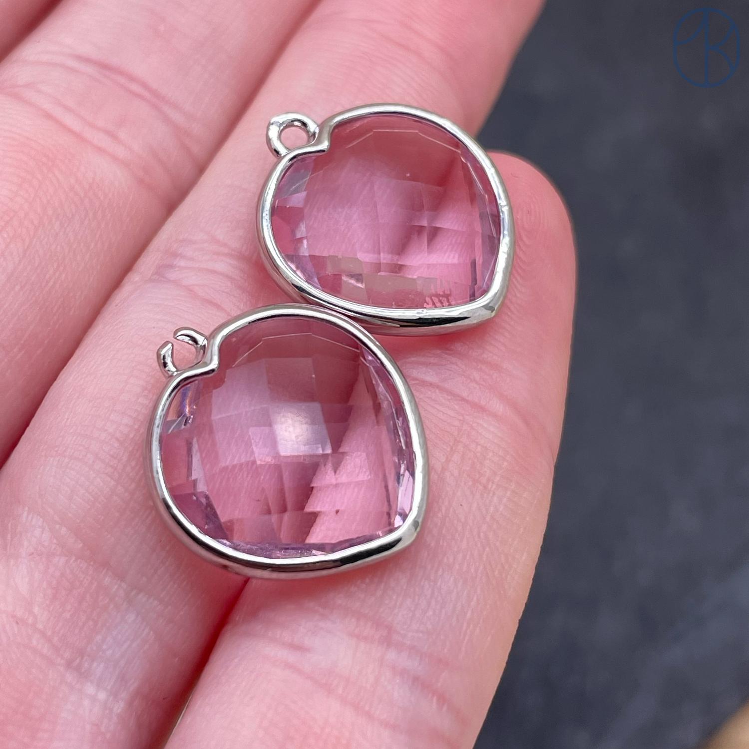 Подвеска сердце стекло розовое, цвет серебро 16х16