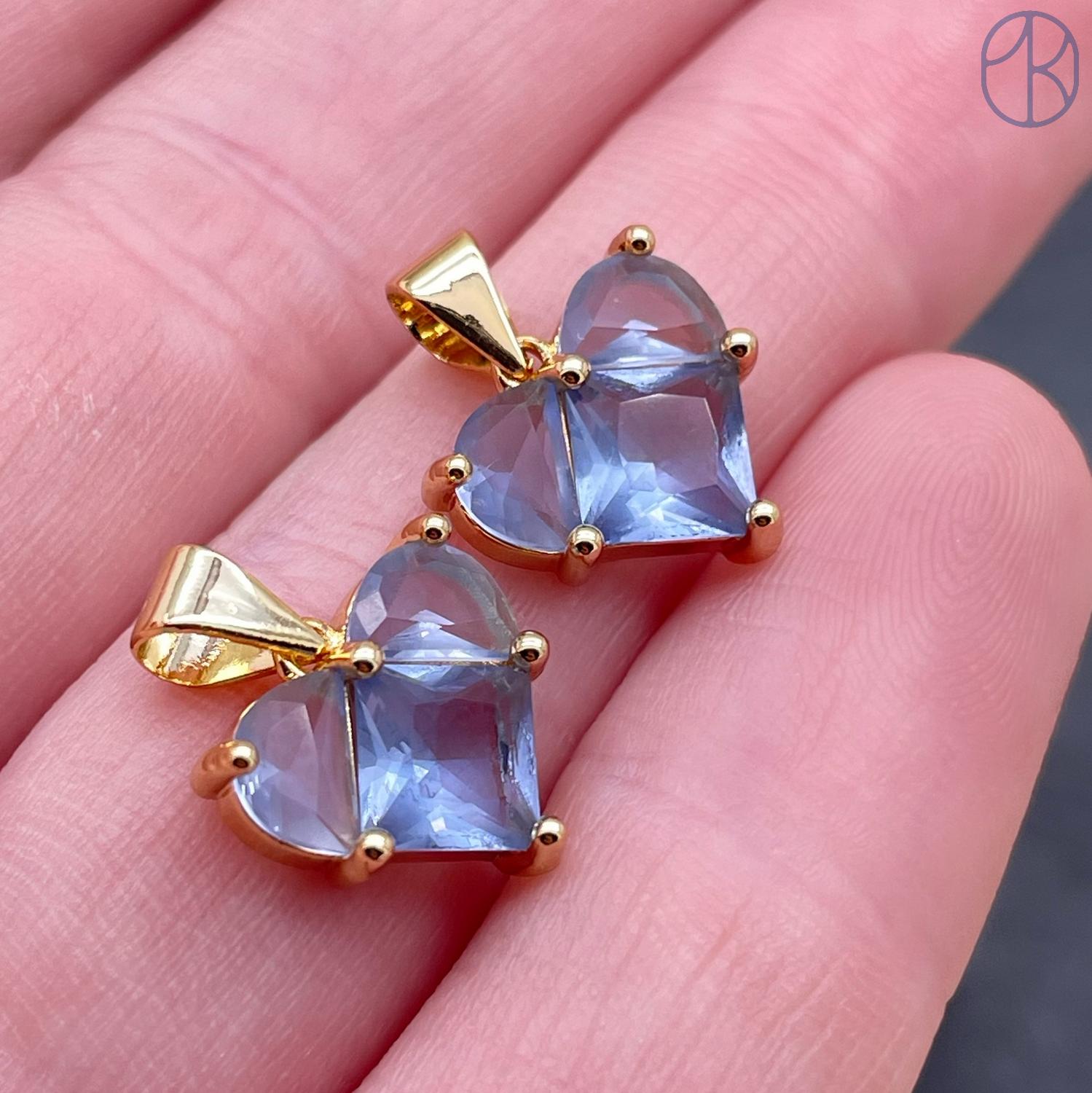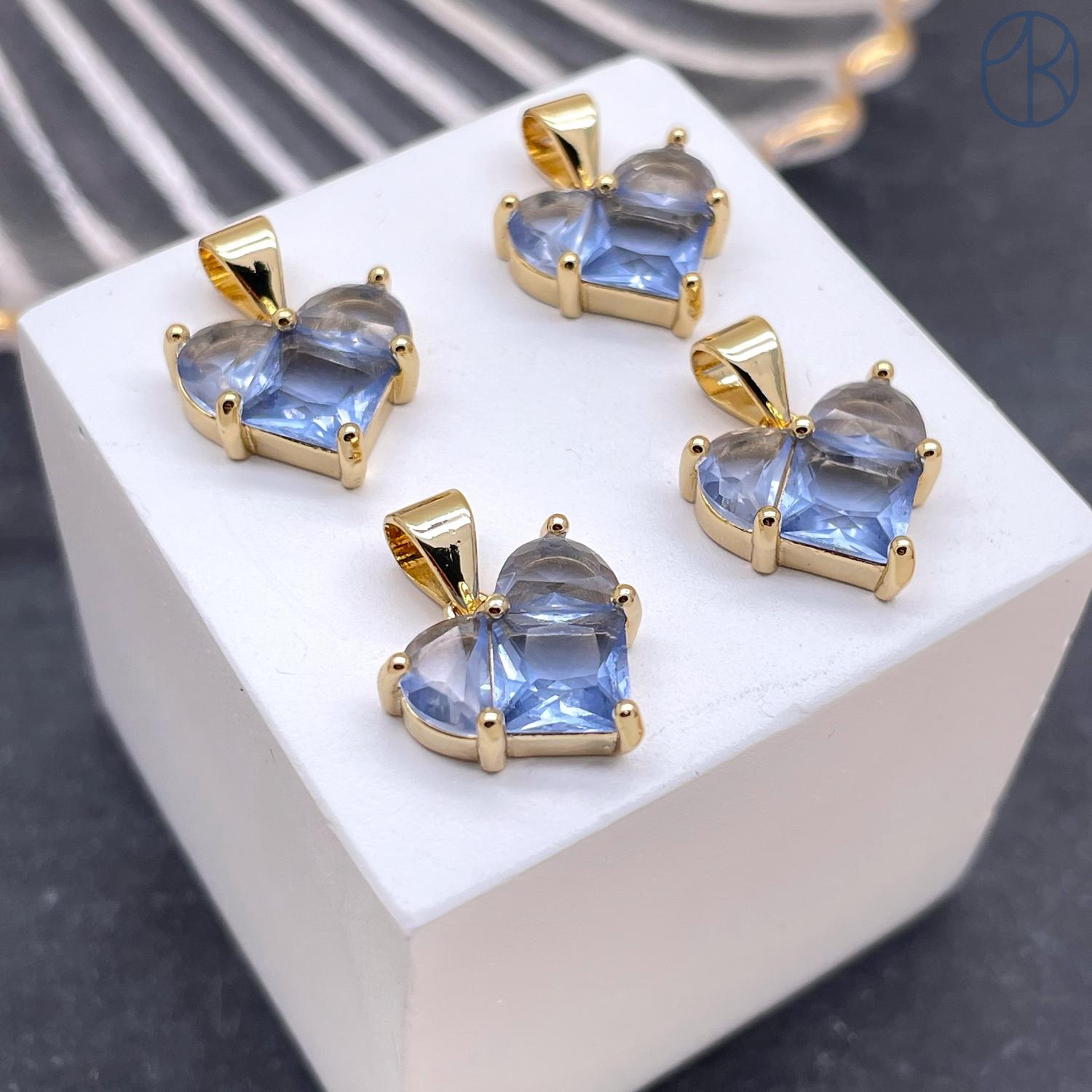 Подвеска Сердце светло-синие цирконы, цвет золото 12х12 мм