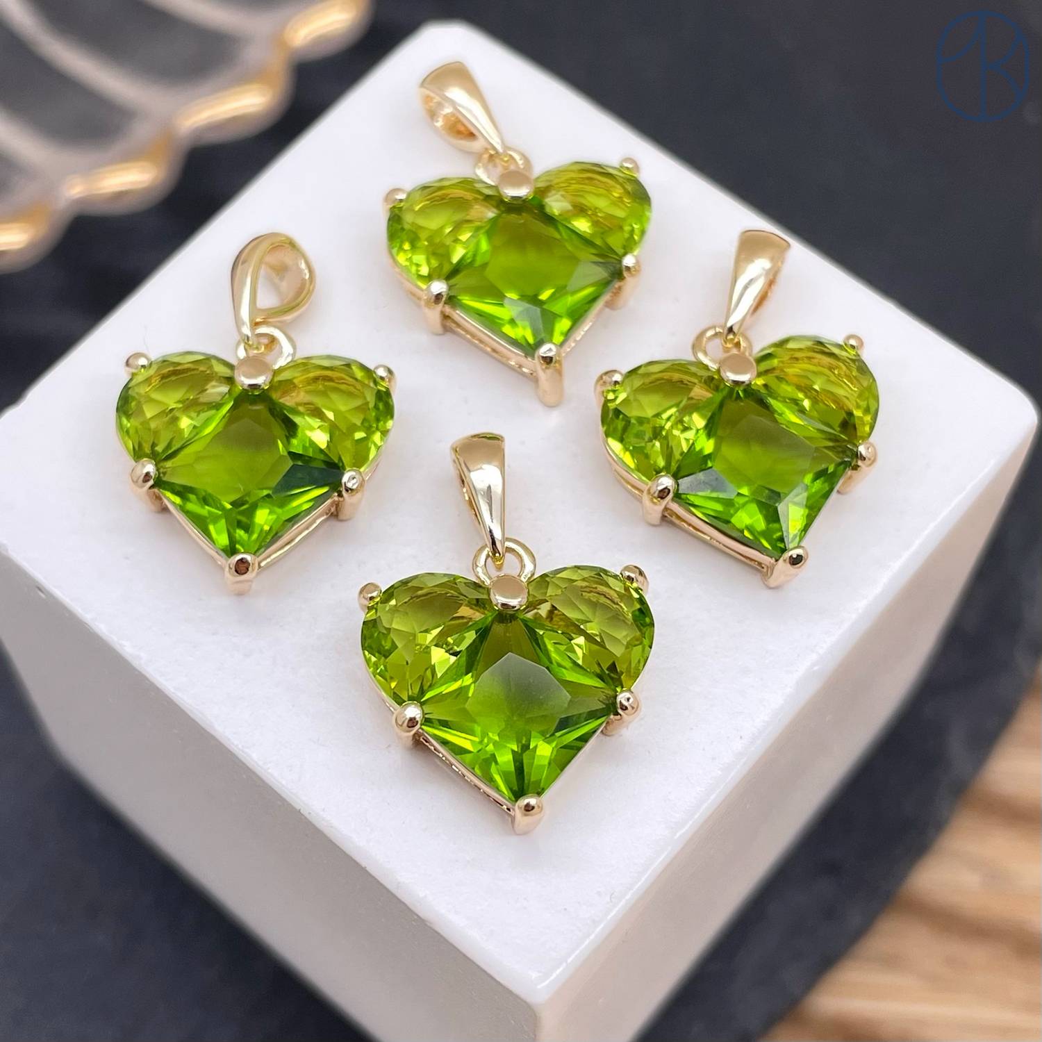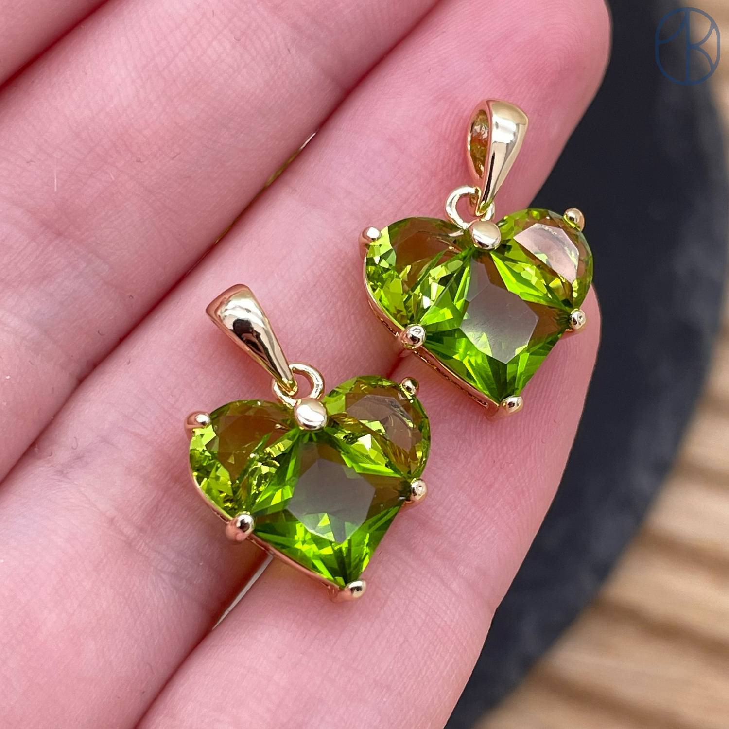 Подвеска сердце светло-зеленые цирконы, цвет золото 14,5х14 мм