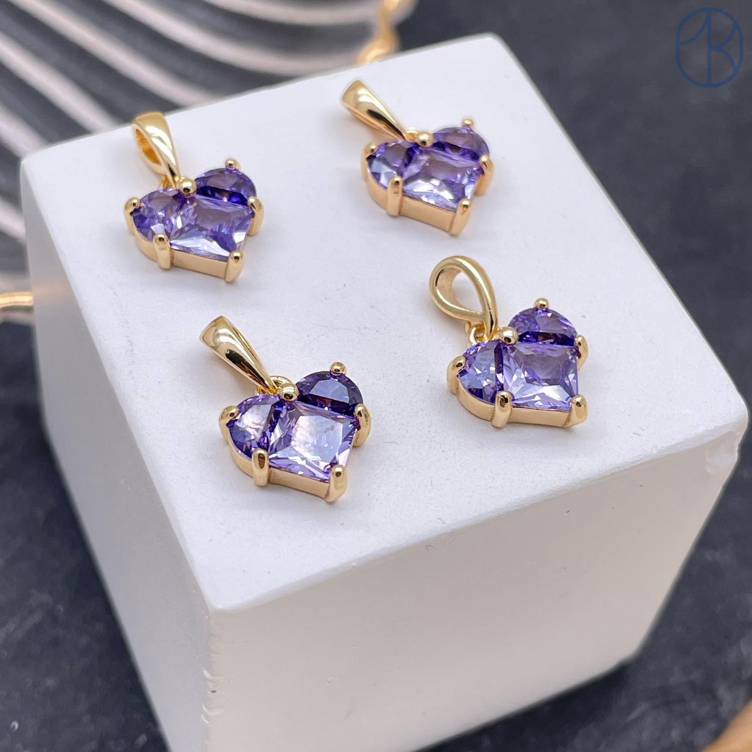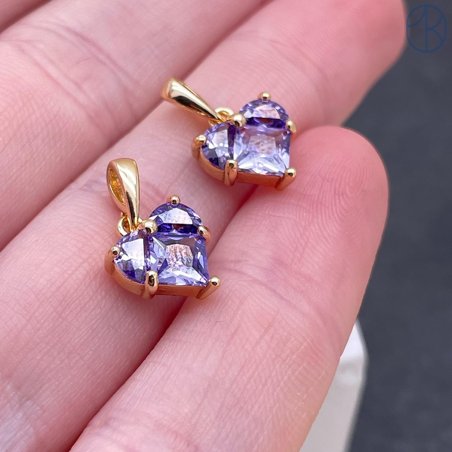 Подвеска Сердце темно-сиреневые цирконы, цвет золото 10х11 мм