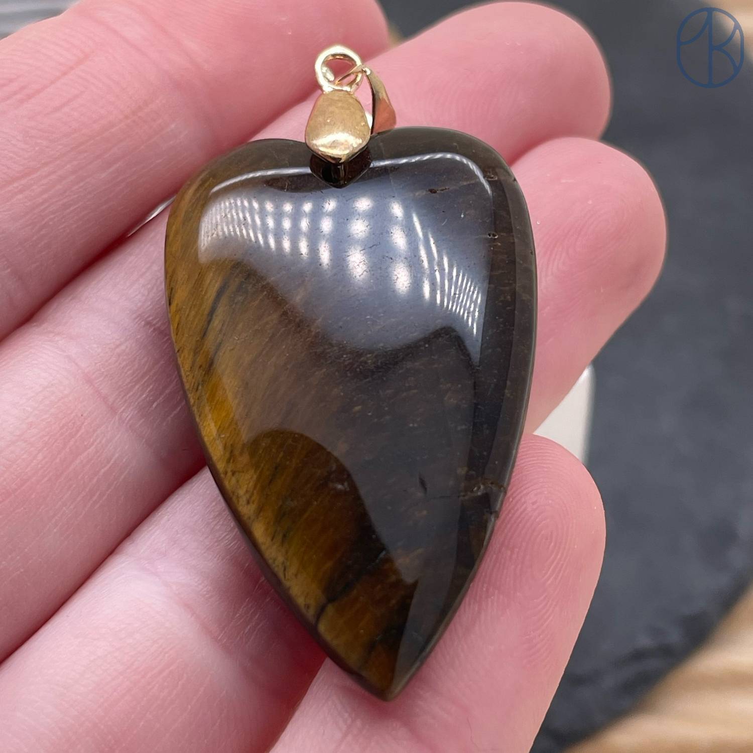Подвеска сердце тигровый глаз, цвет золото 25х40 мм