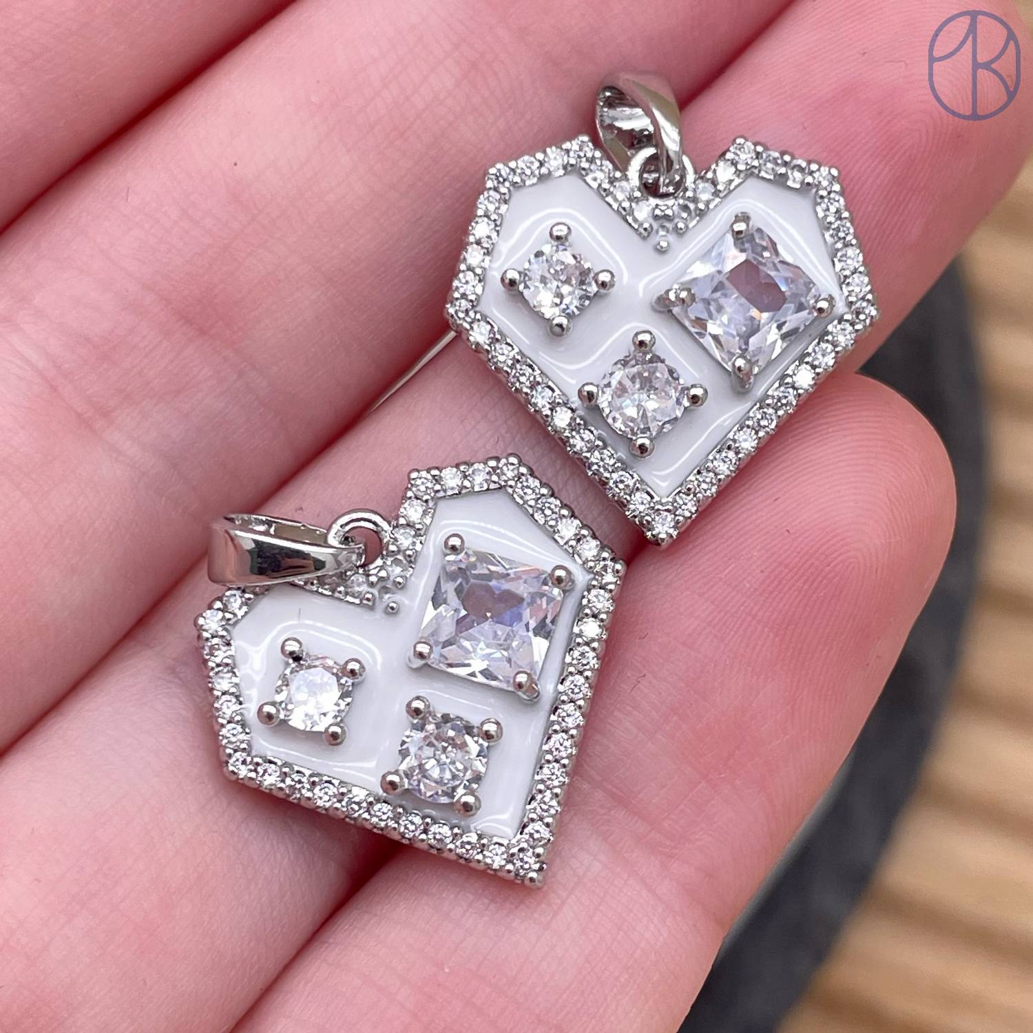 Подвеска сердце циркон белая эмаль, цвет серебро 12 мм