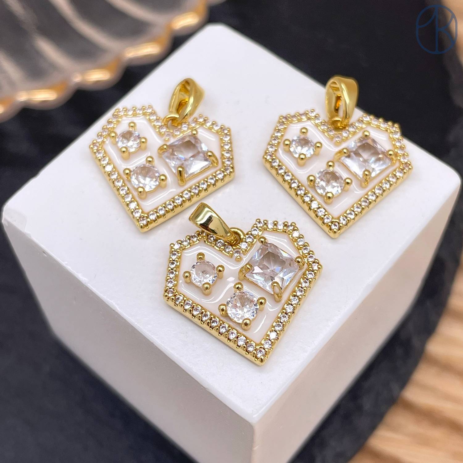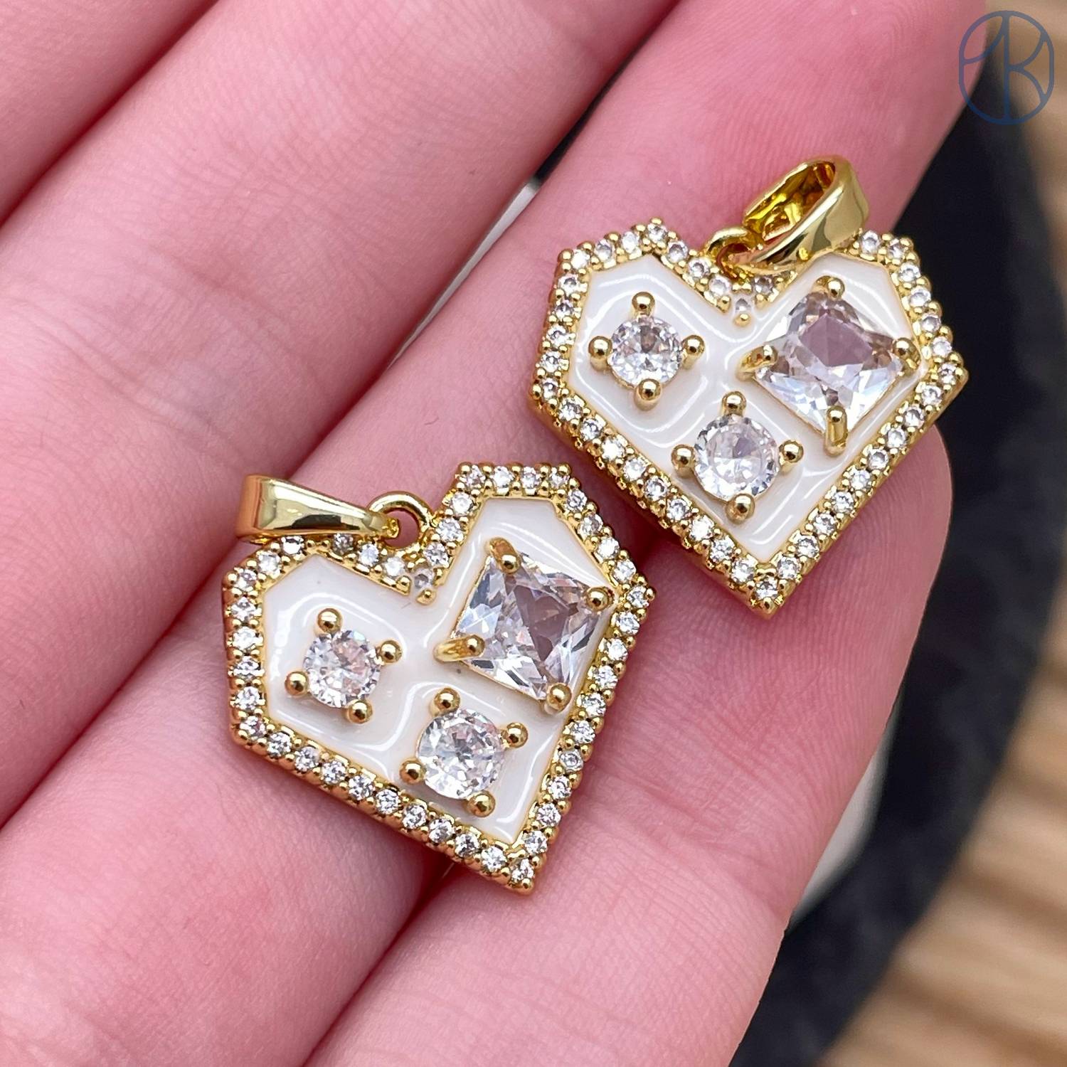 Подвеска сердце циркон белая эмаль, цвет золото 12 мм
