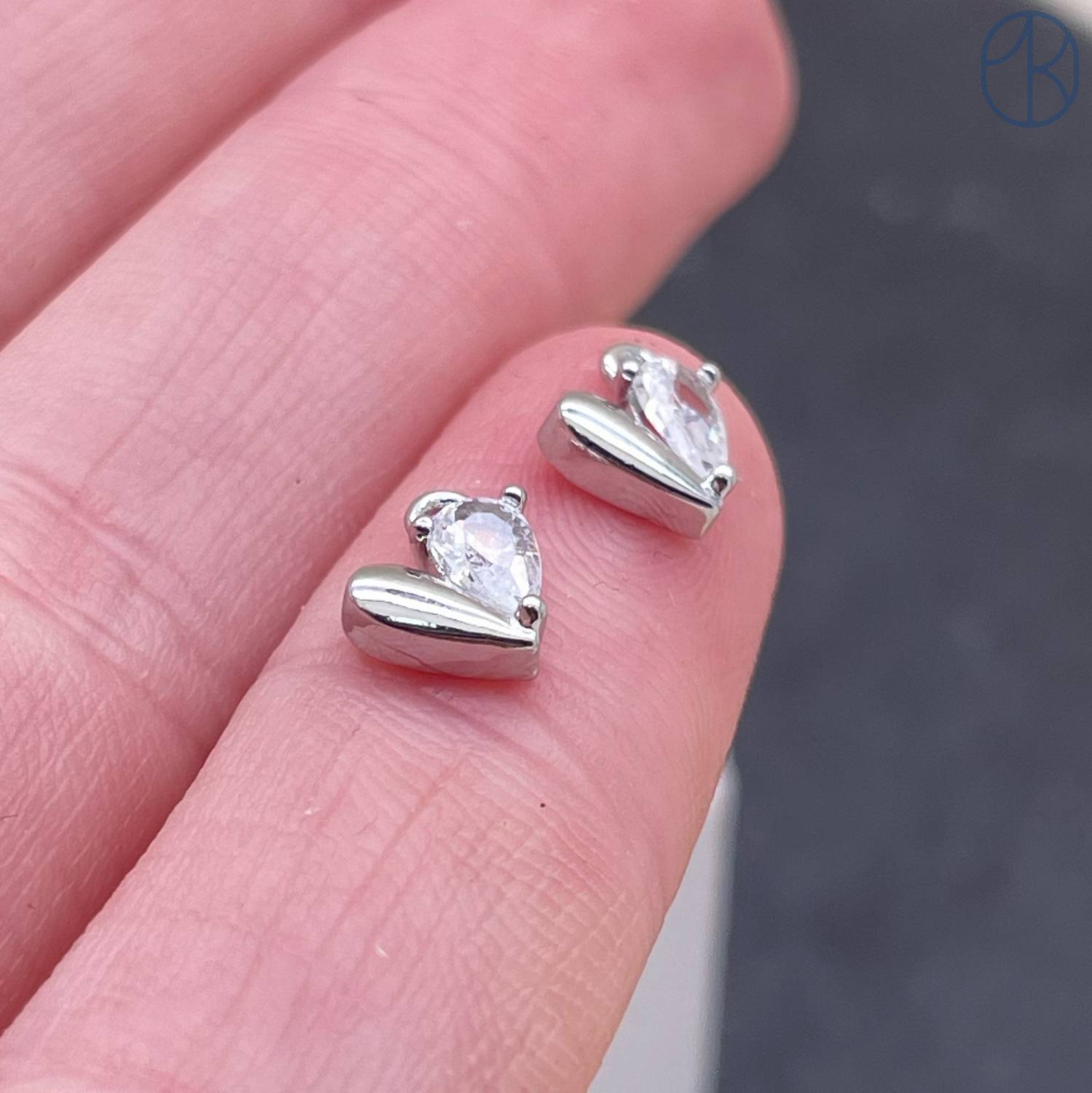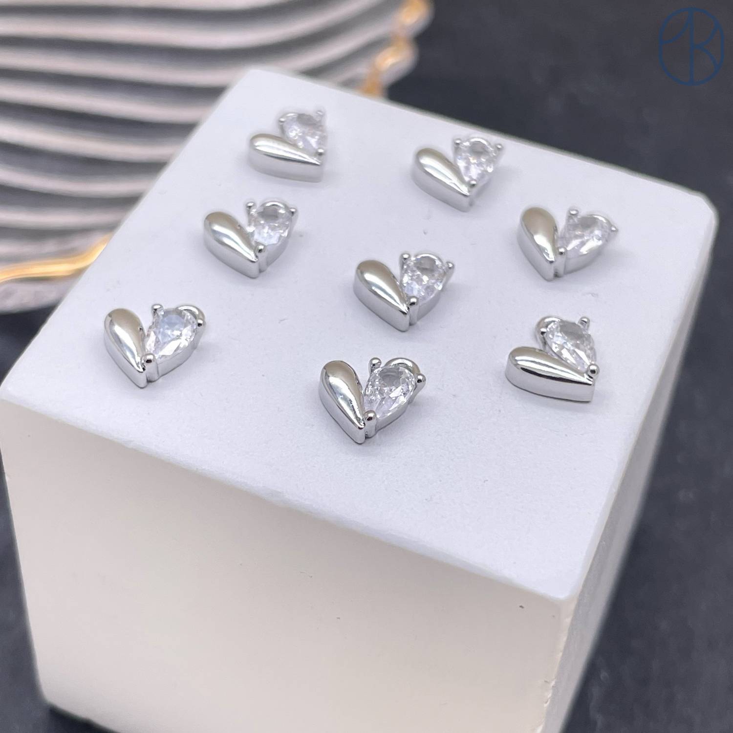 Подвеска сердце циркон, цвет серебро 3х5 мм
