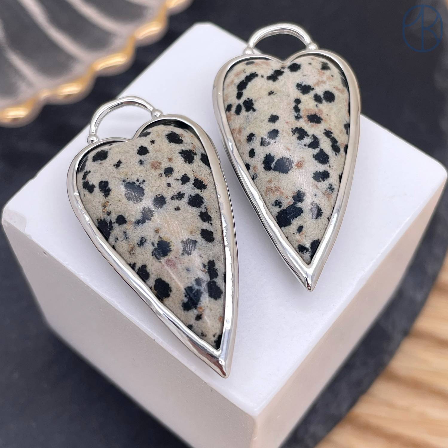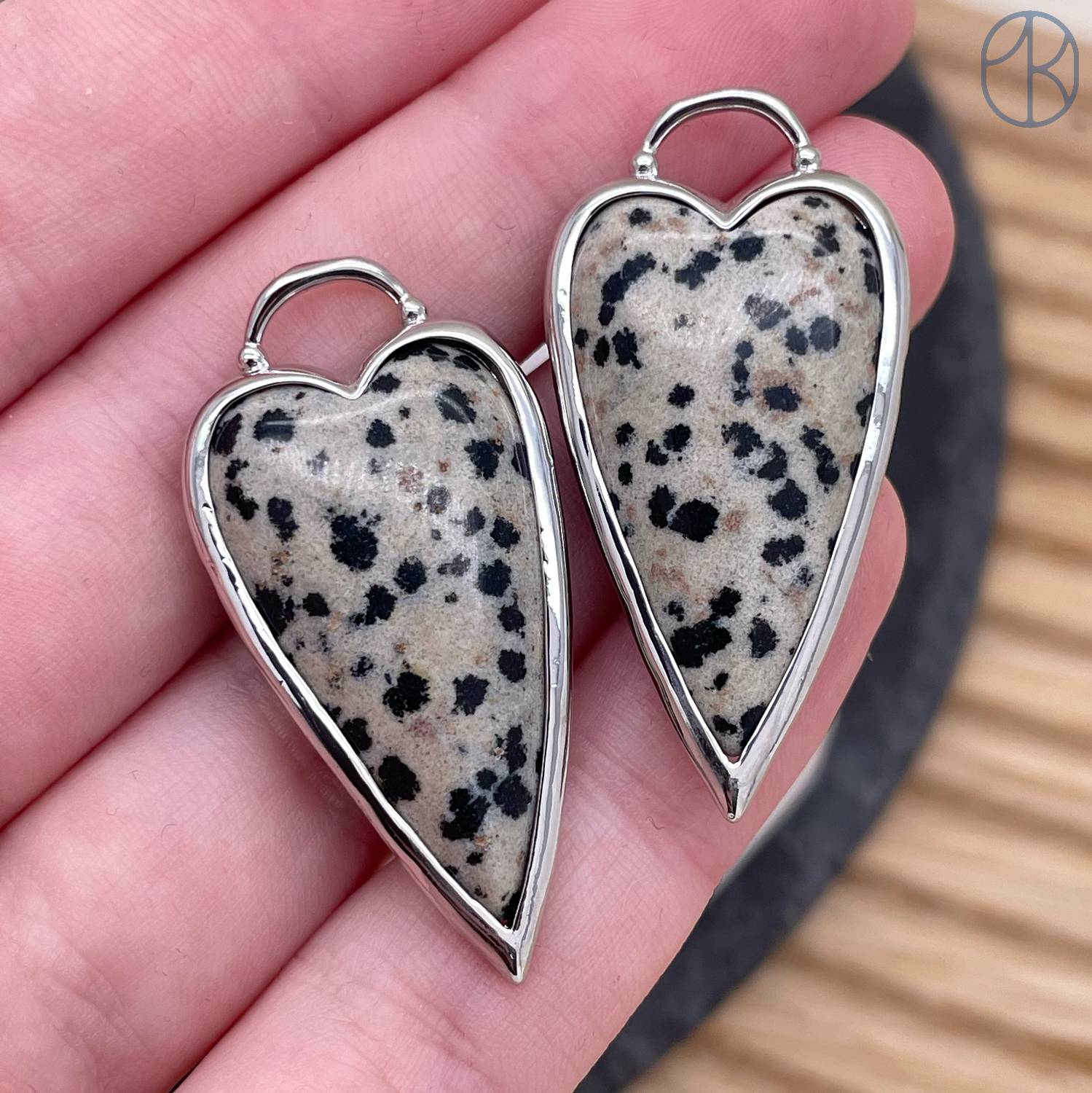 Подвеска сердце яшма далматиновая, цвет серебро 30х12 мм