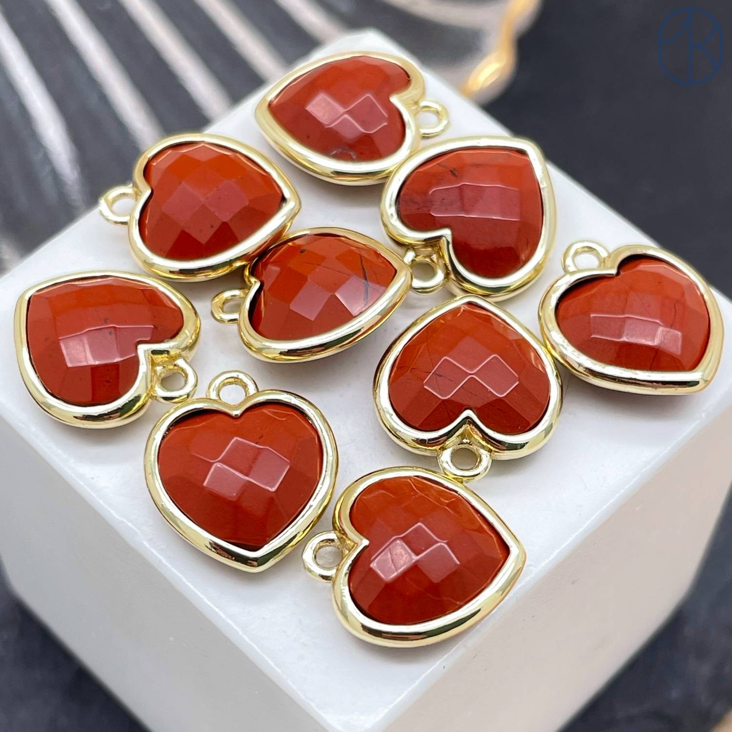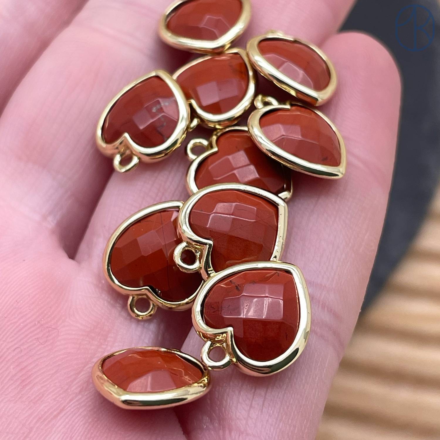Подвеска сердце яшма красная, цвет золото 12х13 мм