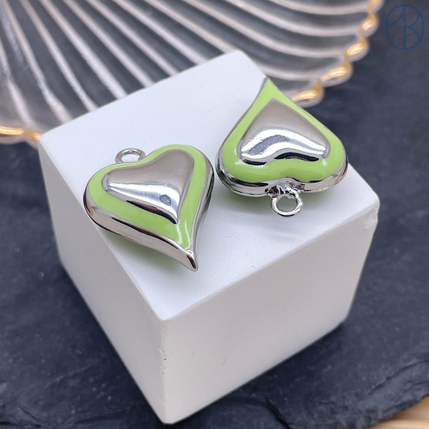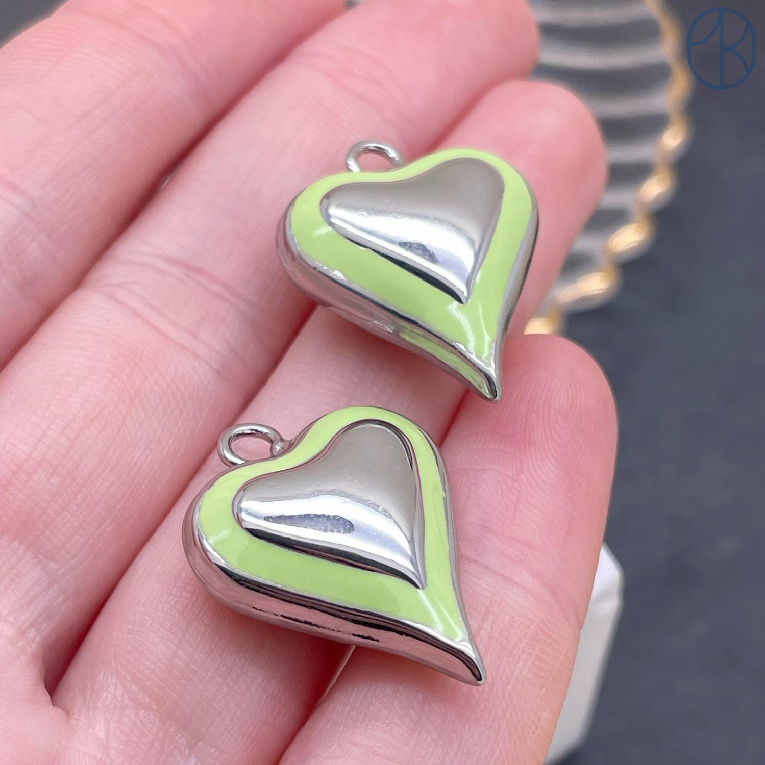 Подвеска сердце зеленая эмаль, цвет серебро 26х20 мм