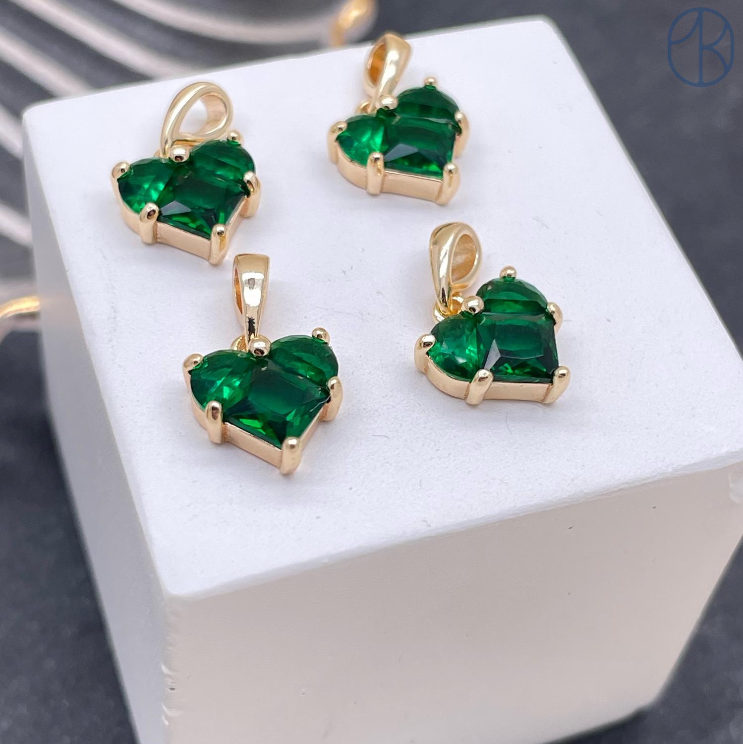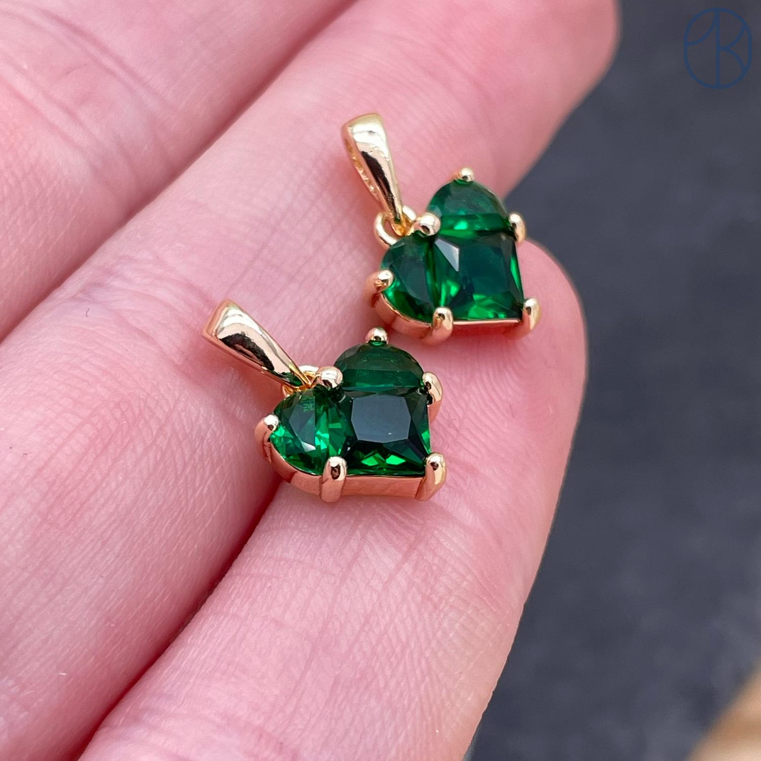 Подвеска Сердце зеленые цирконы, цвет золото 10х11 мм