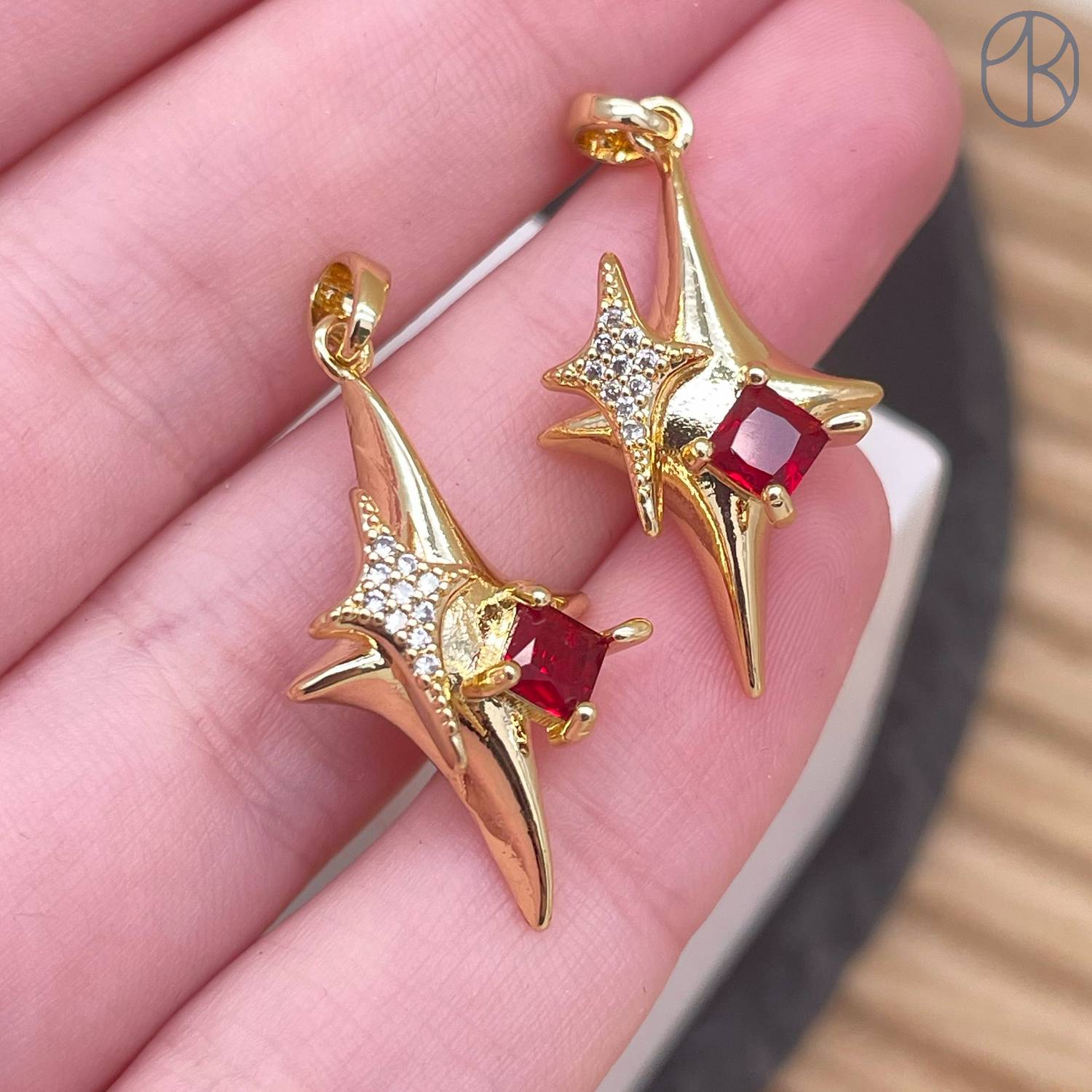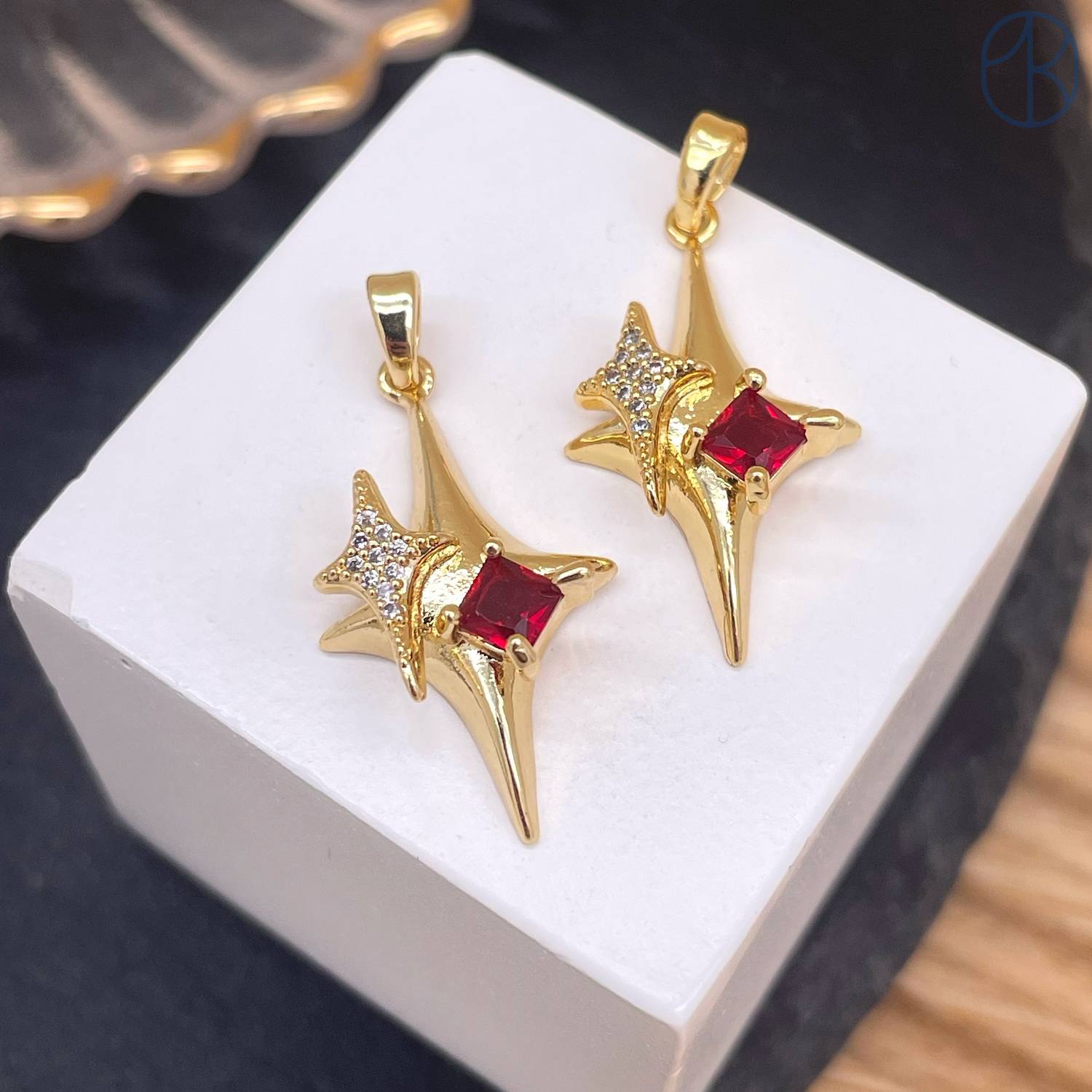 Подвеска северная звезда красный циркон, цвет золото 26 мм