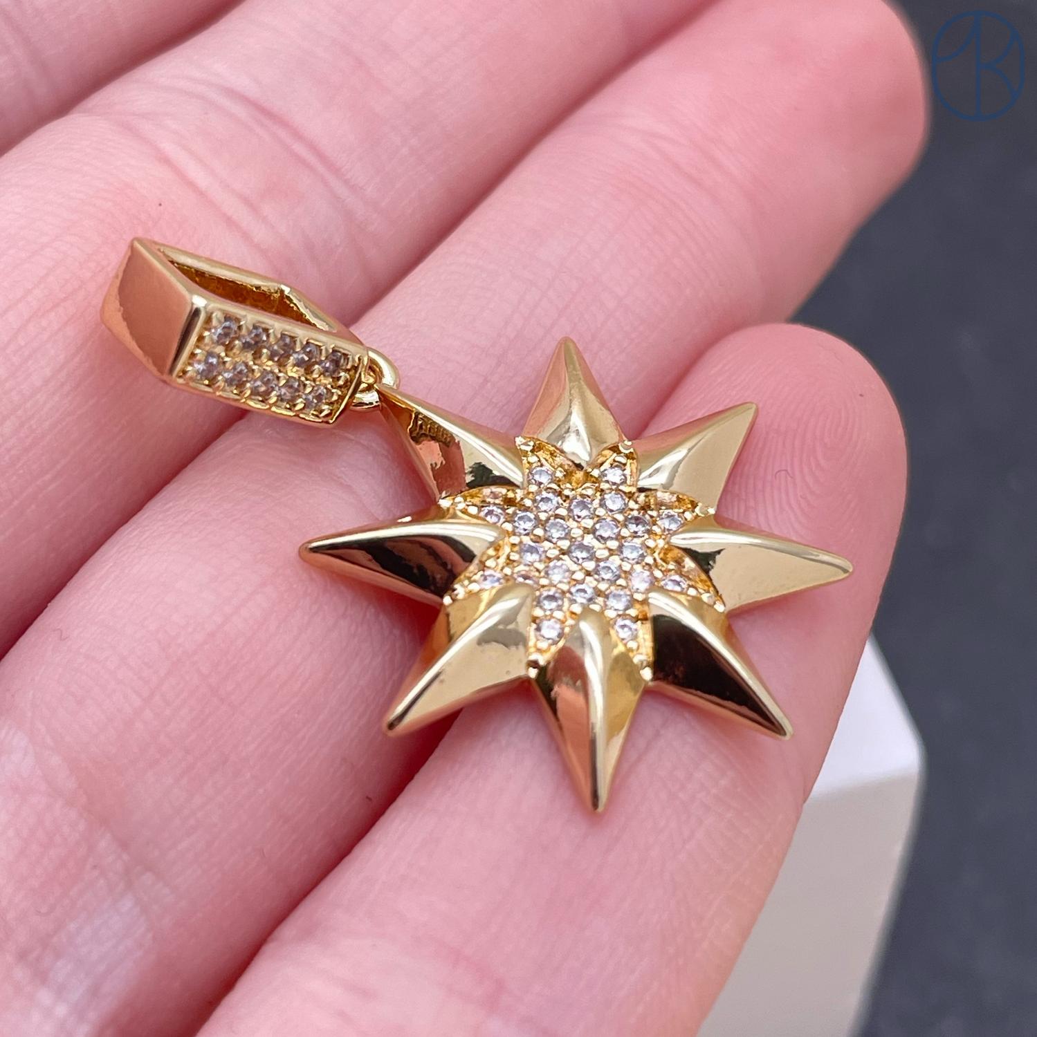 Подвеска северная звезда цирконы, цвет золото 26 мм