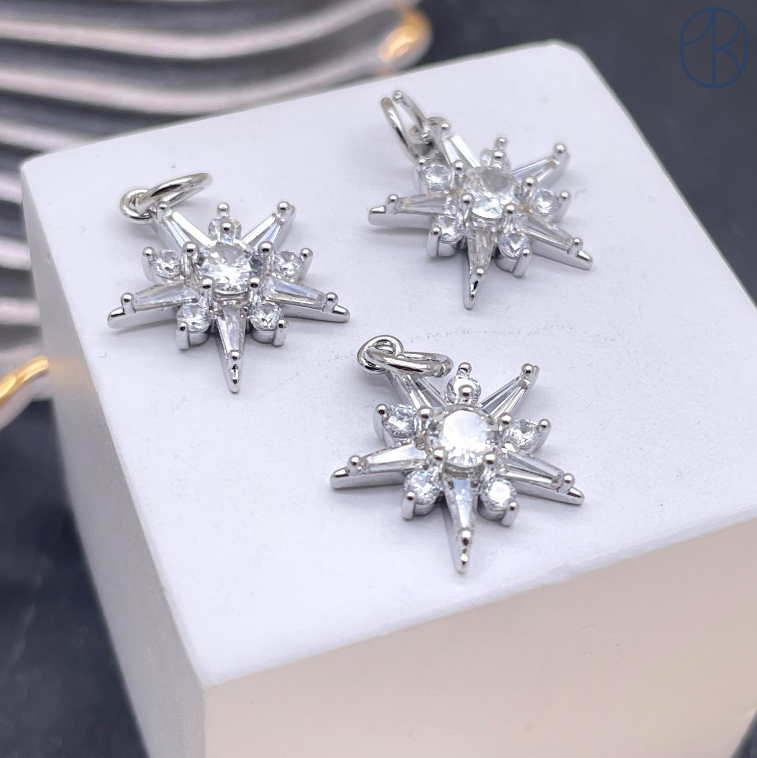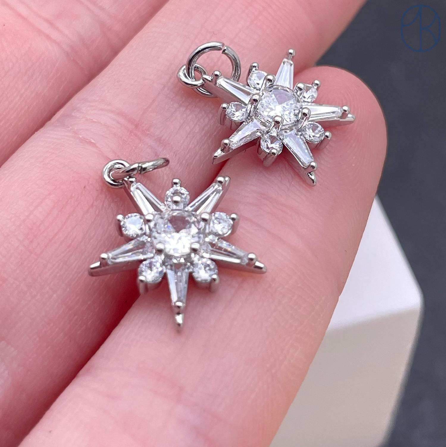 Подвеска снежинка цирконы, цвет серебро 14 мм