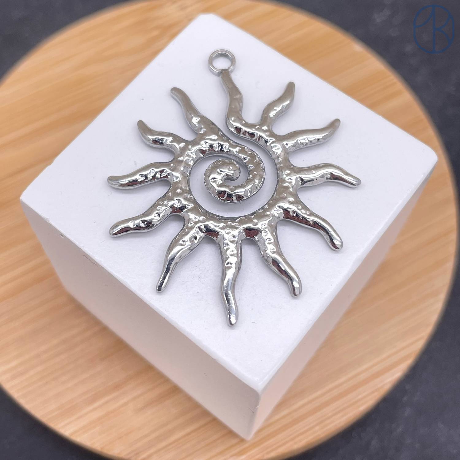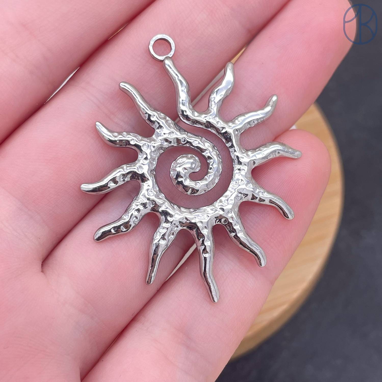 Подвеска солнце №8 сталь 40x33 мм, цвет серебро