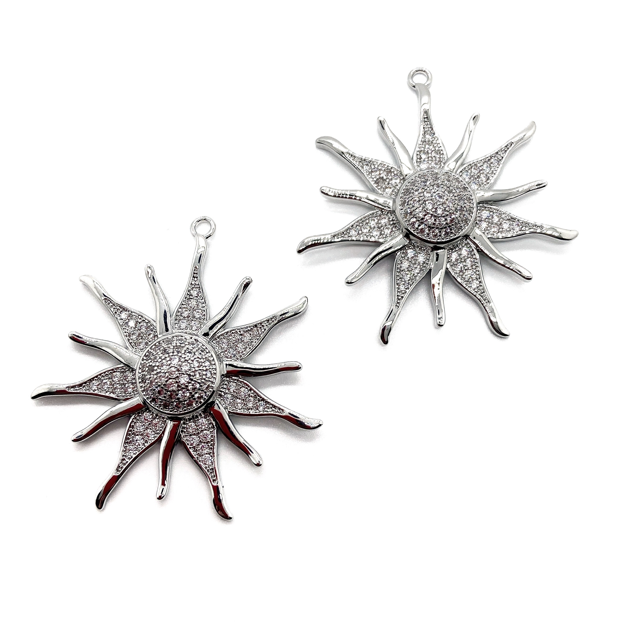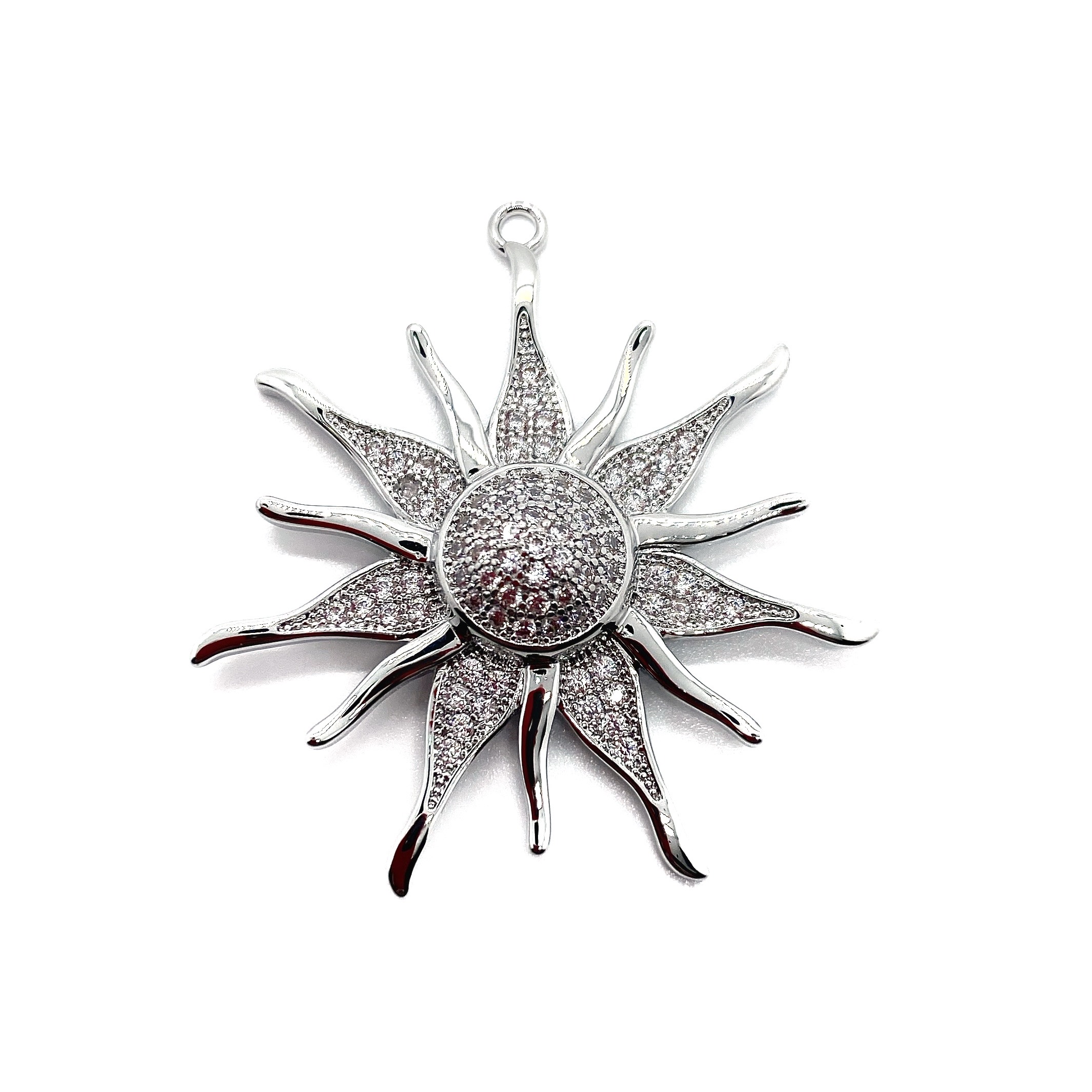 Подвеска Солнце большое стразы, цвет серебро 37х35 мм