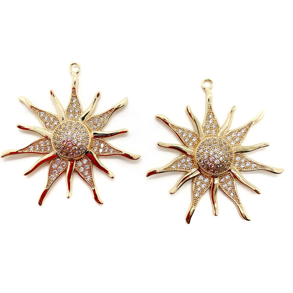 Подвеска Солнце большое стразы, цвет золото 37х35 мм