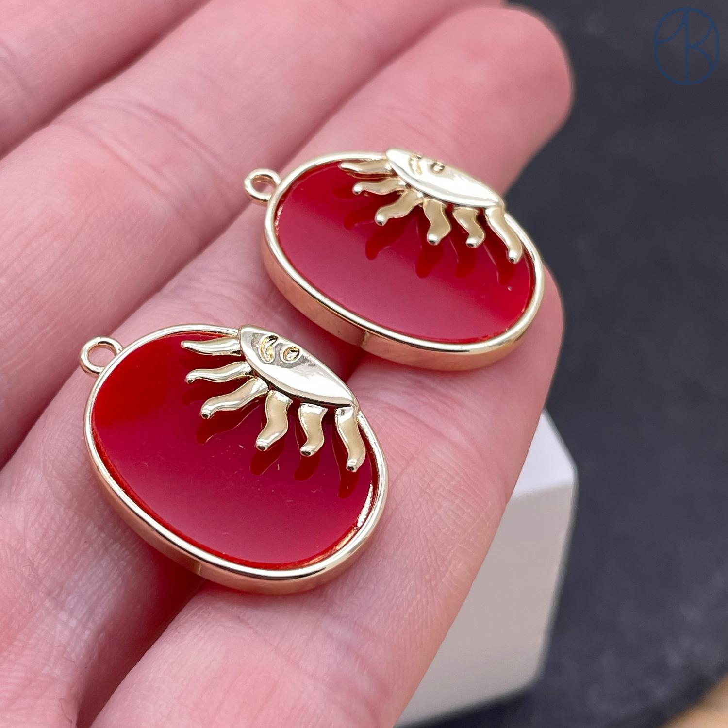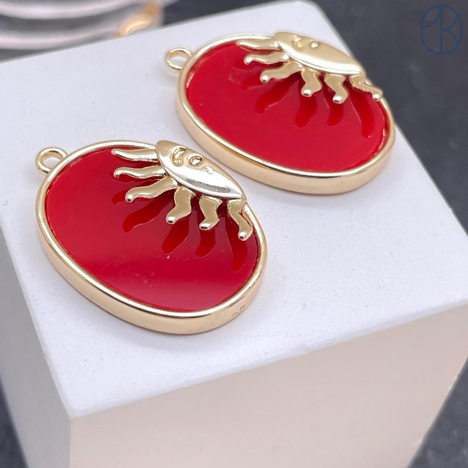 Подвеска солнце красная эмаль, цвет золото 21х17 мм