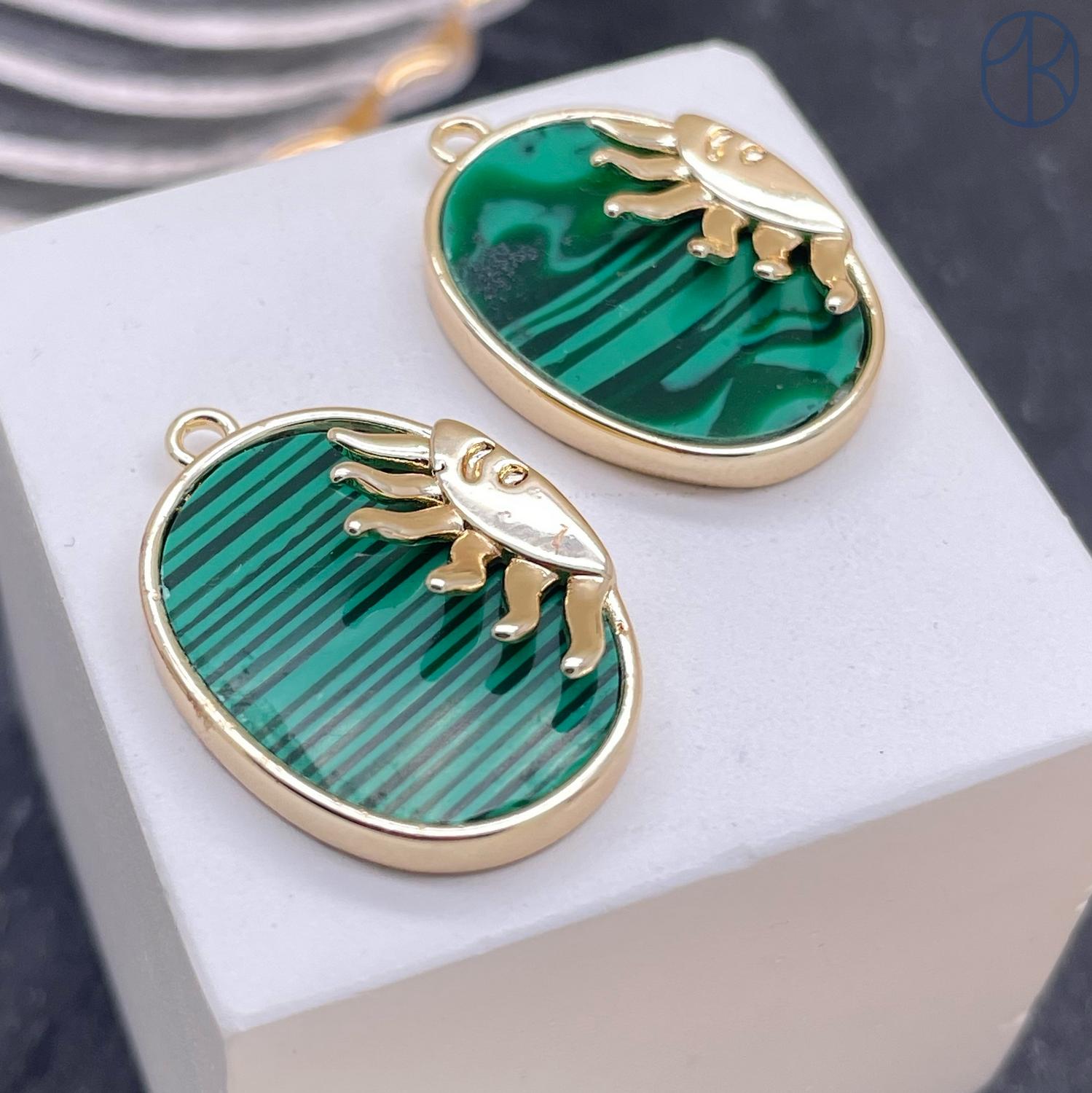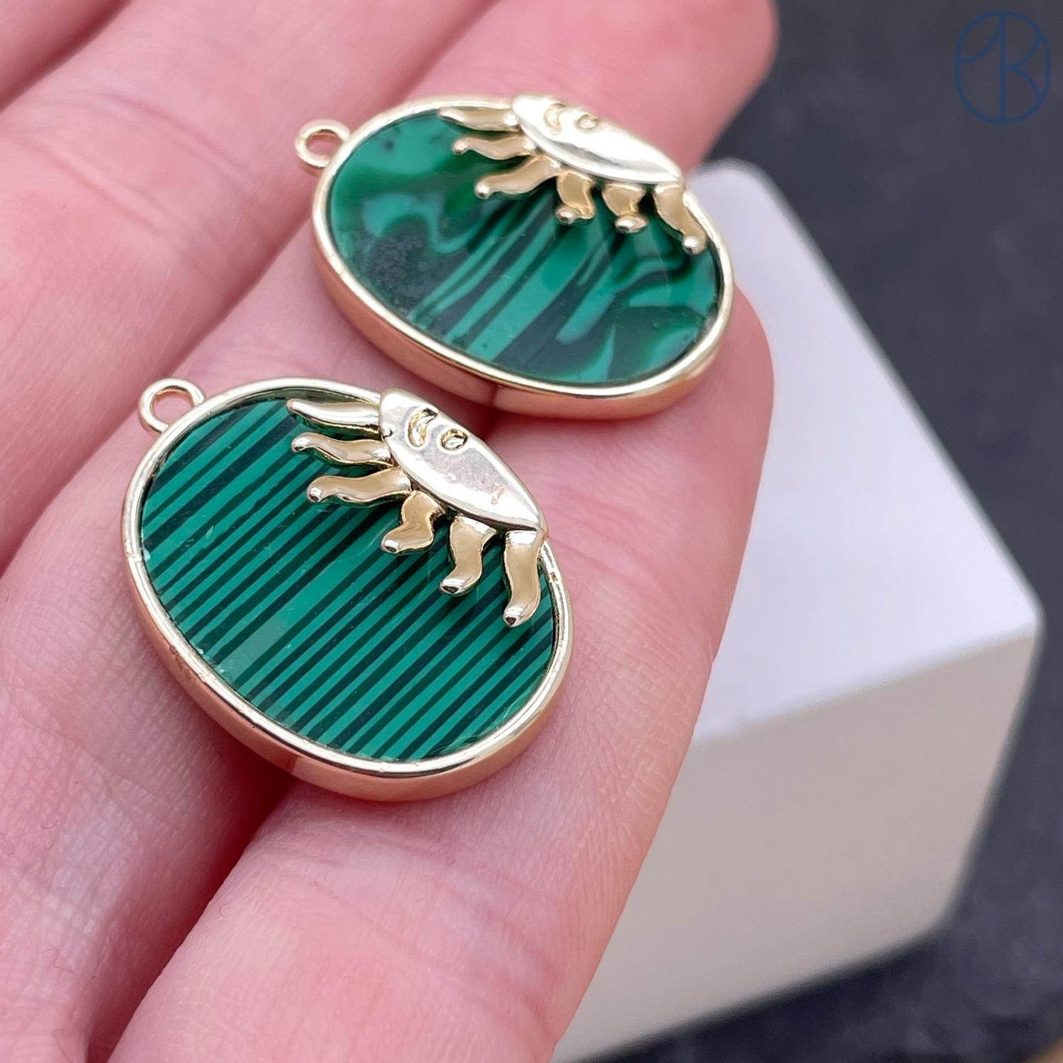 Подвеска солнце малахит (имитация) эмаль, цвет золото 21х17 мм