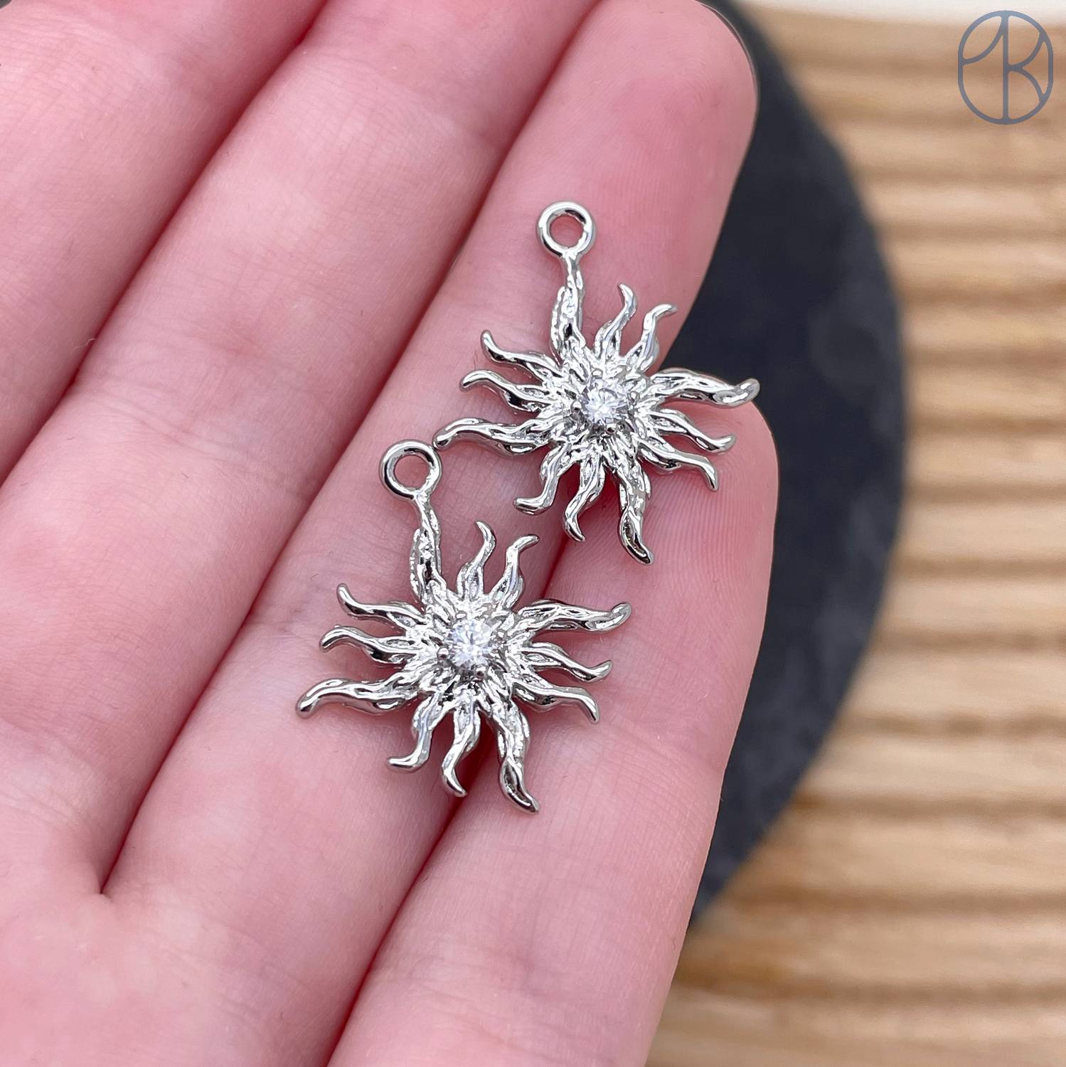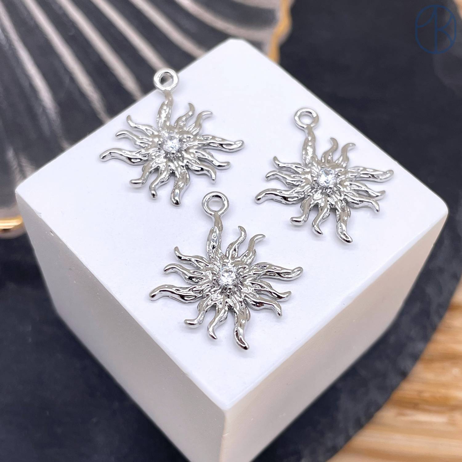 Подвеска солнце циркон, цвет серебро 15 мм