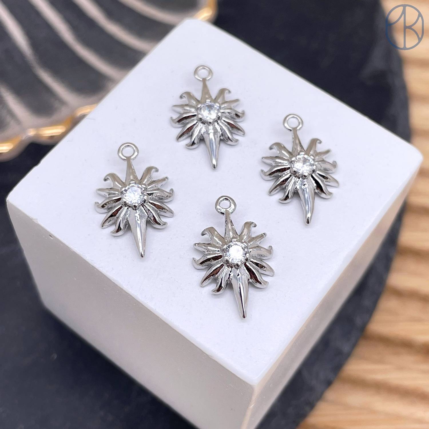 Подвеска солнце циркон, цвет серебро 16 мм