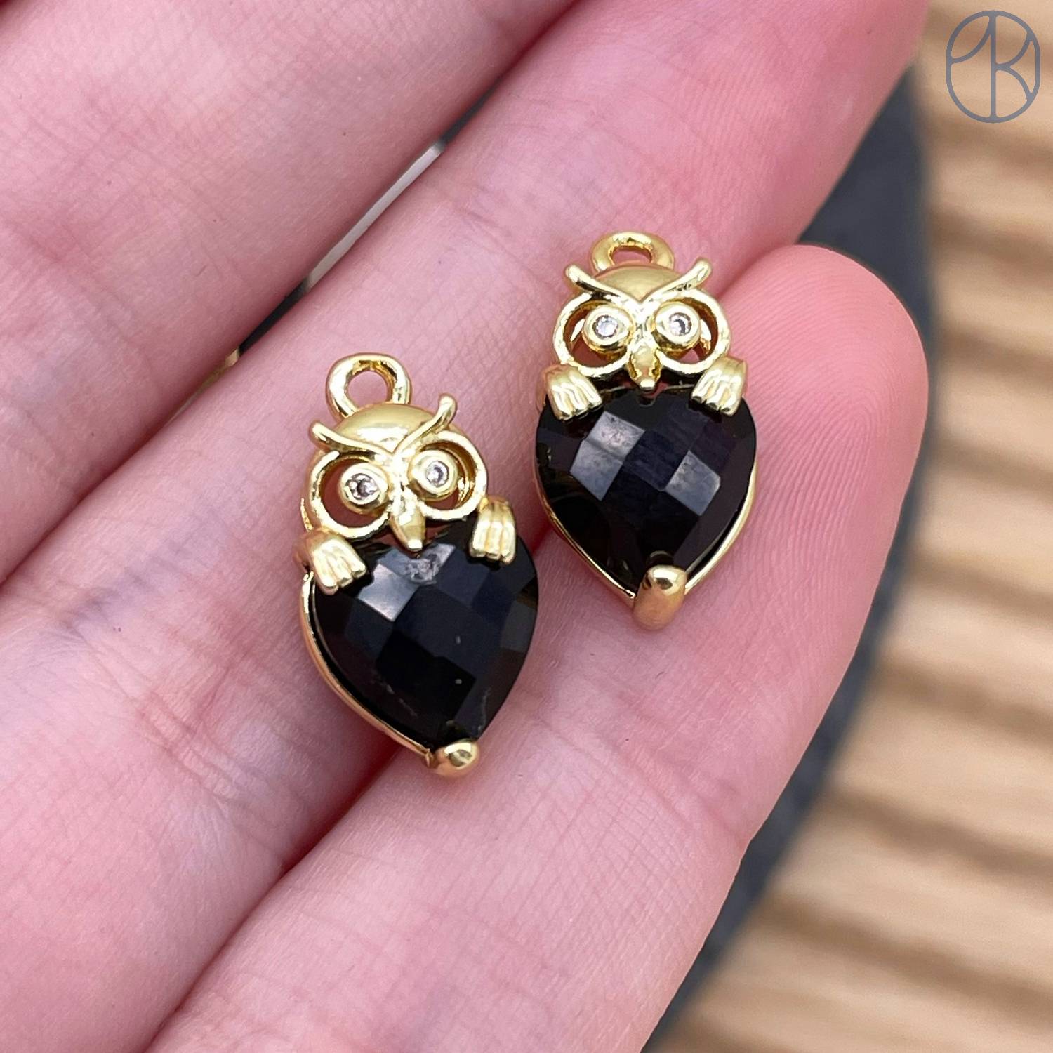 Подвеска сова черный агат, цвет золото 14 мм