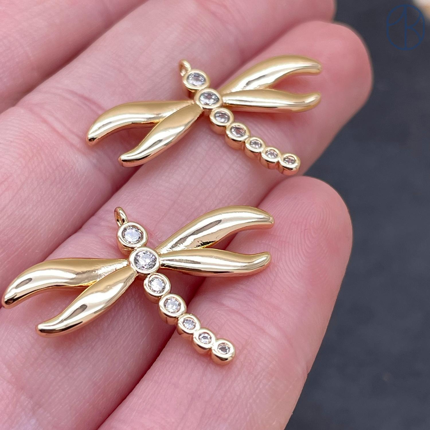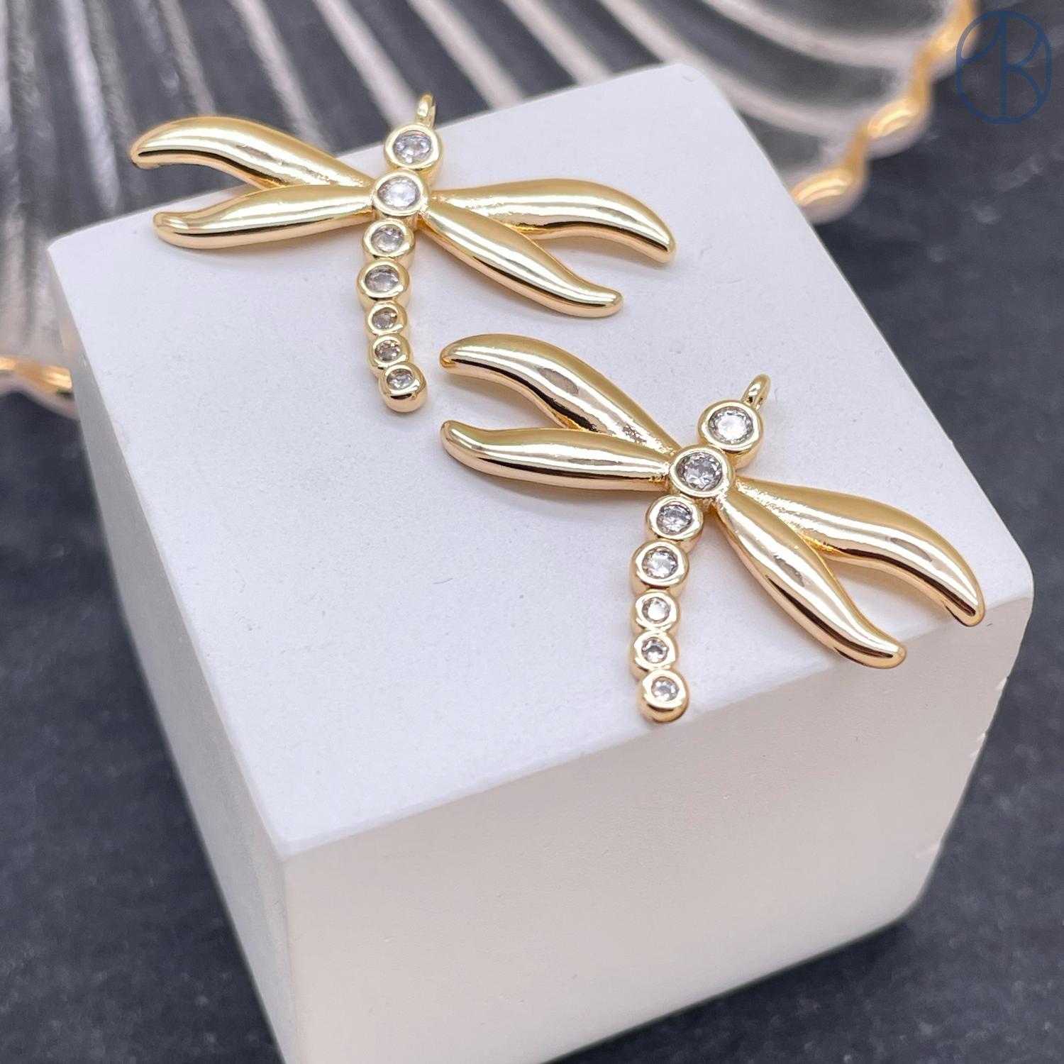 Подвеска стрекоза цирконы, цвет золото 20х30 мм