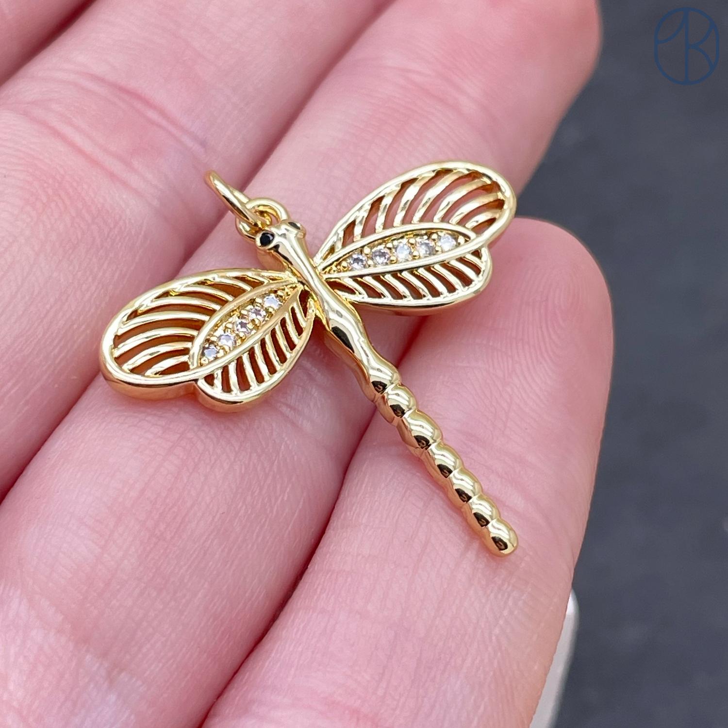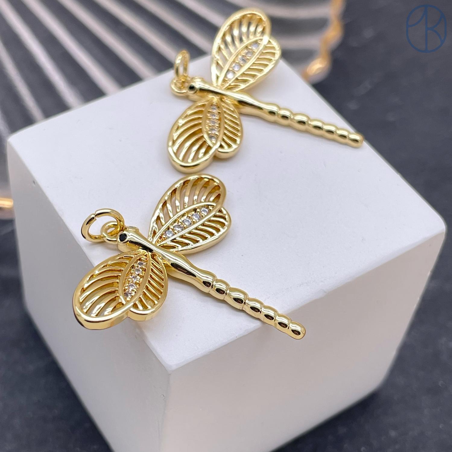 Подвеска стрекоза цирконы, цвет золото 26х26 мм
