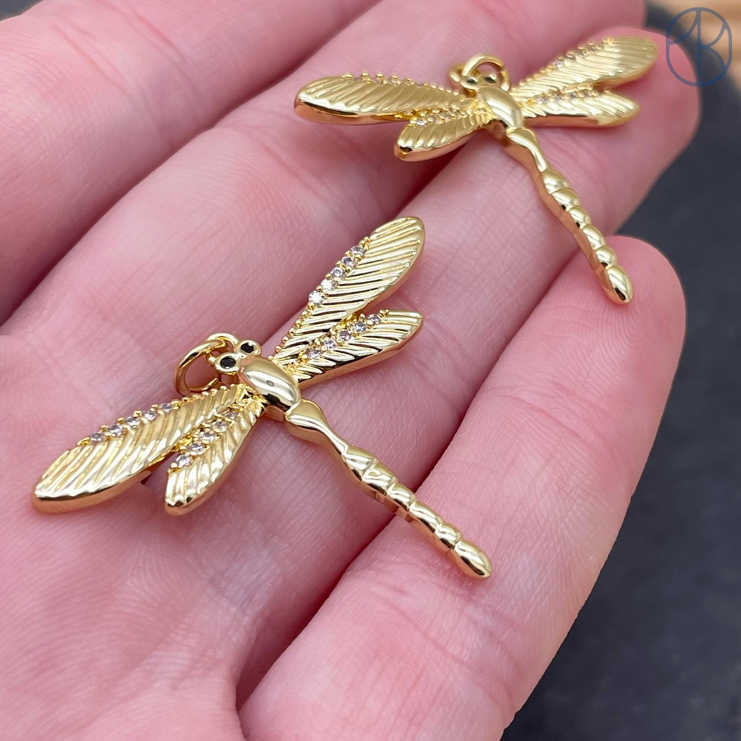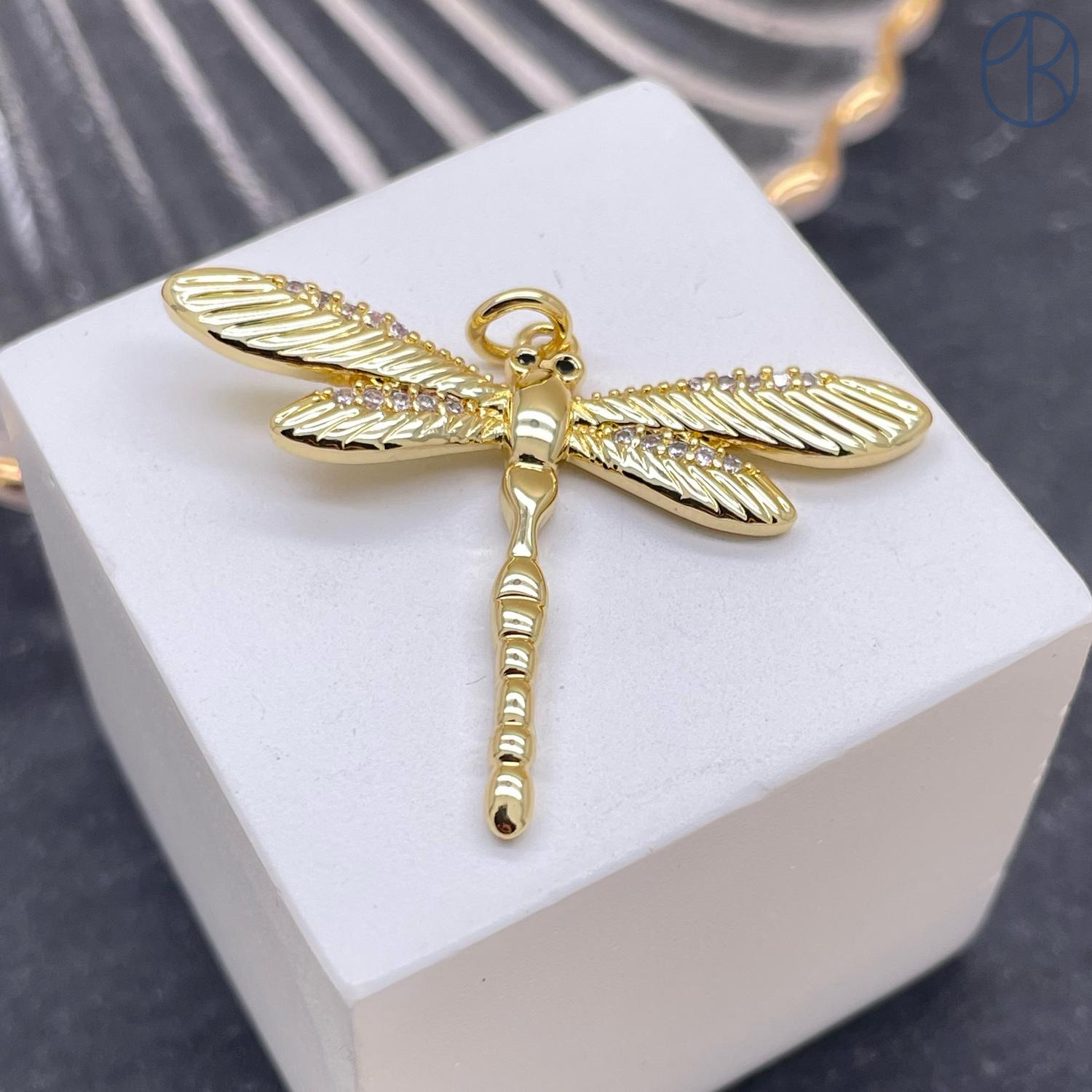 Подвеска стрекоза цирконы, цвет золото 26х27 мм