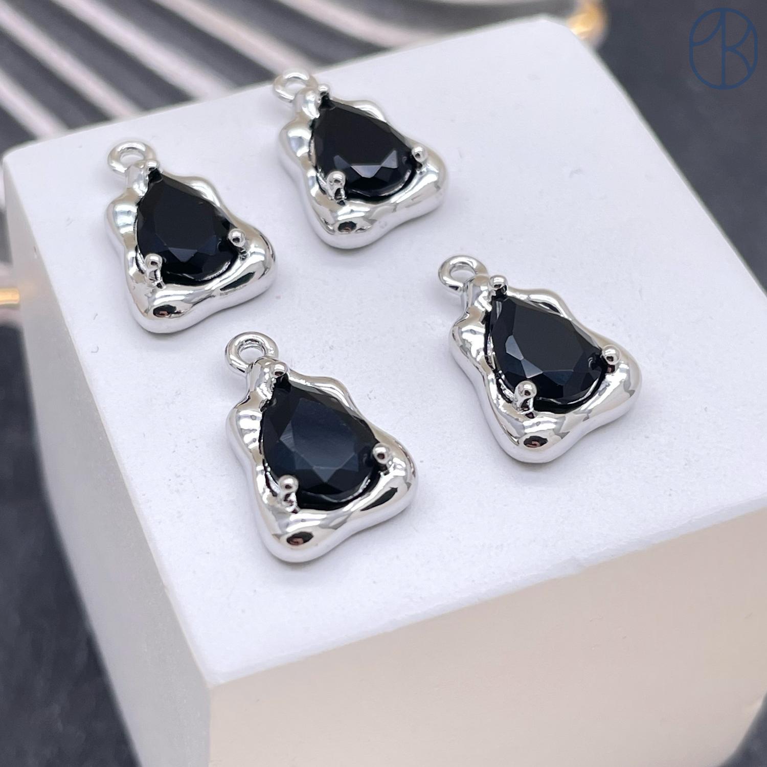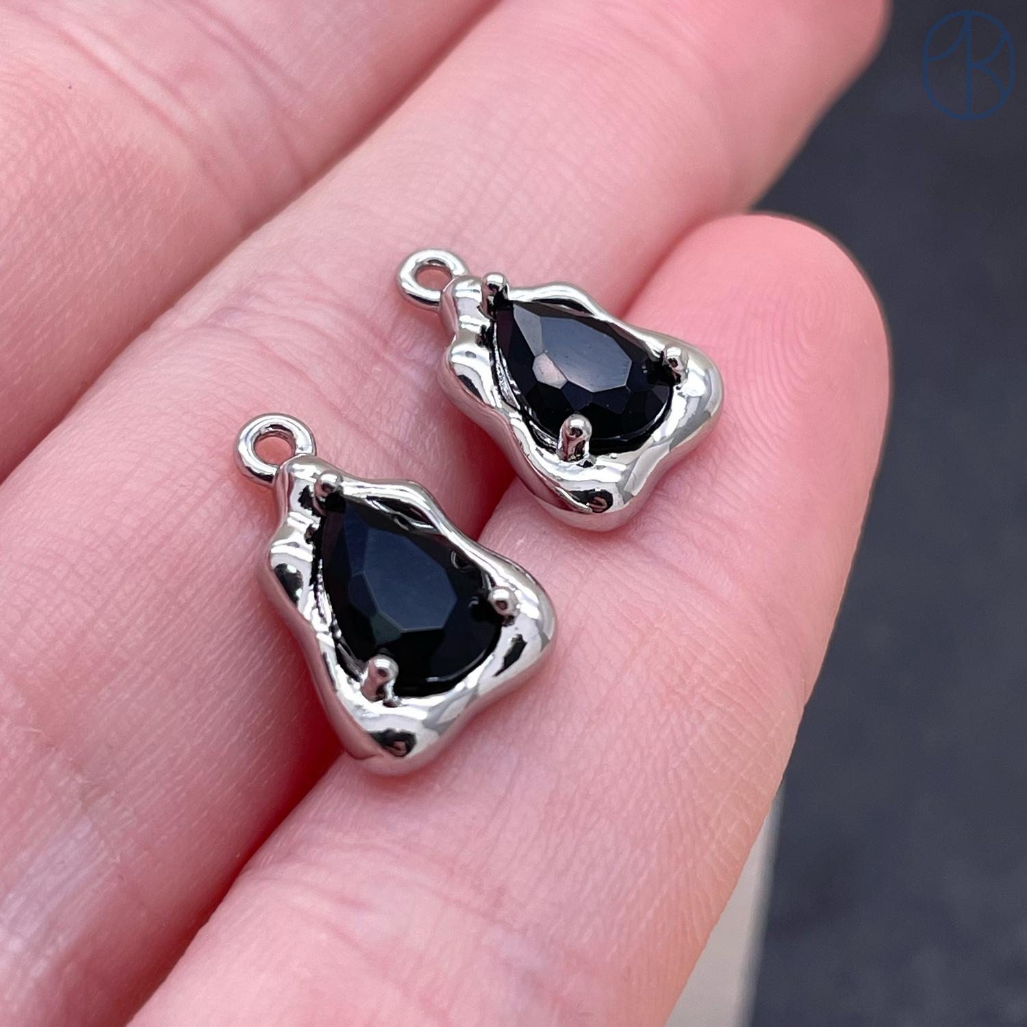 Подвеска треугольник фриформ черный циркон, цвет серебро 9х14 мм