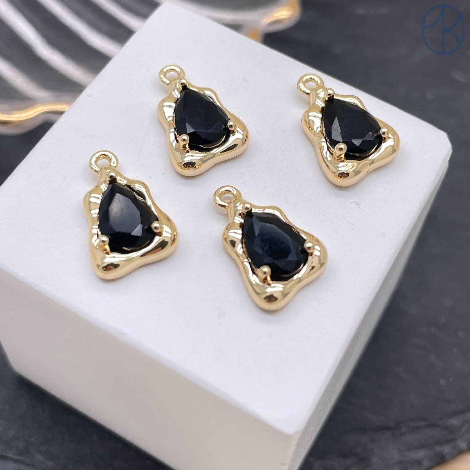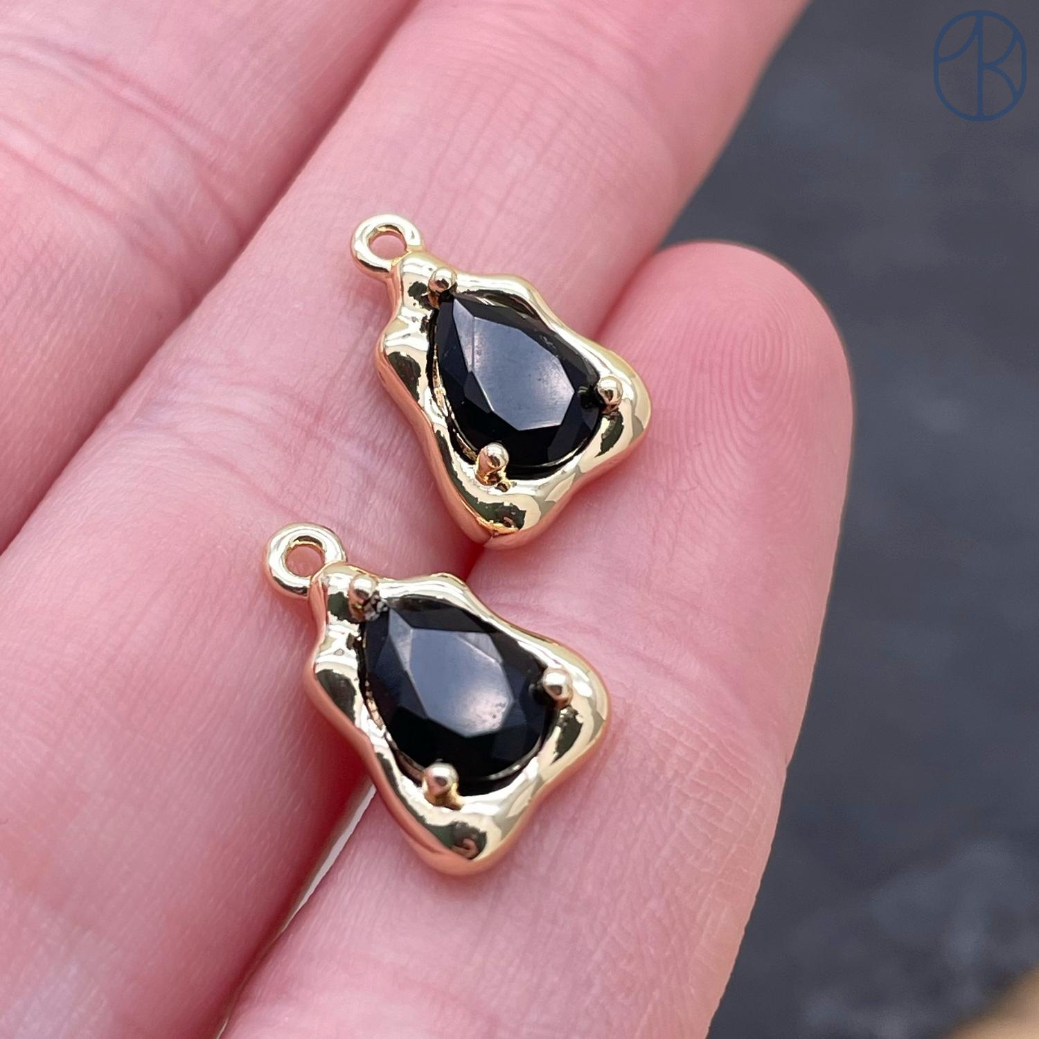 Подвеска треугольник фриформ черный циркон, цвет золото 9х14 мм