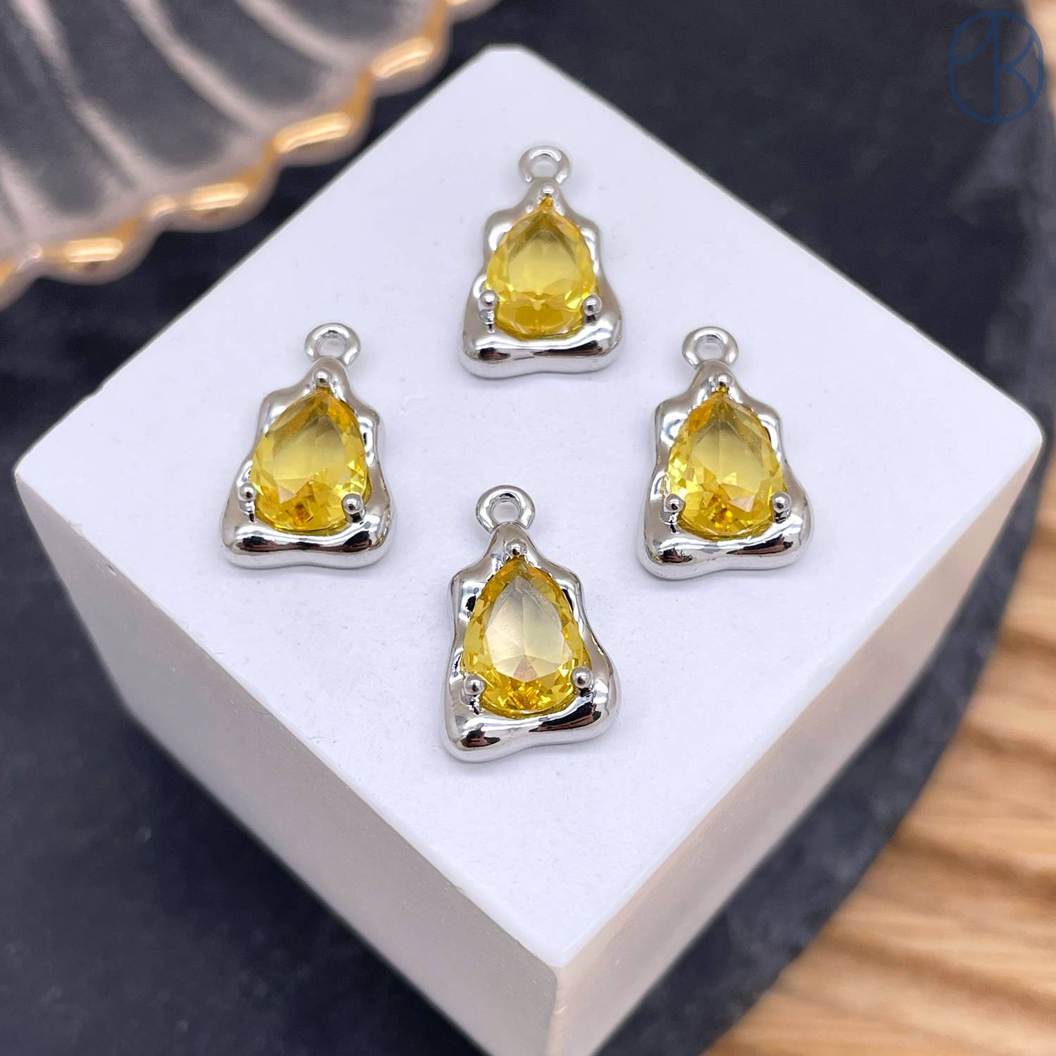 Подвеска треугольник фриформ желтый циркон, цвет серебро 9х14 мм