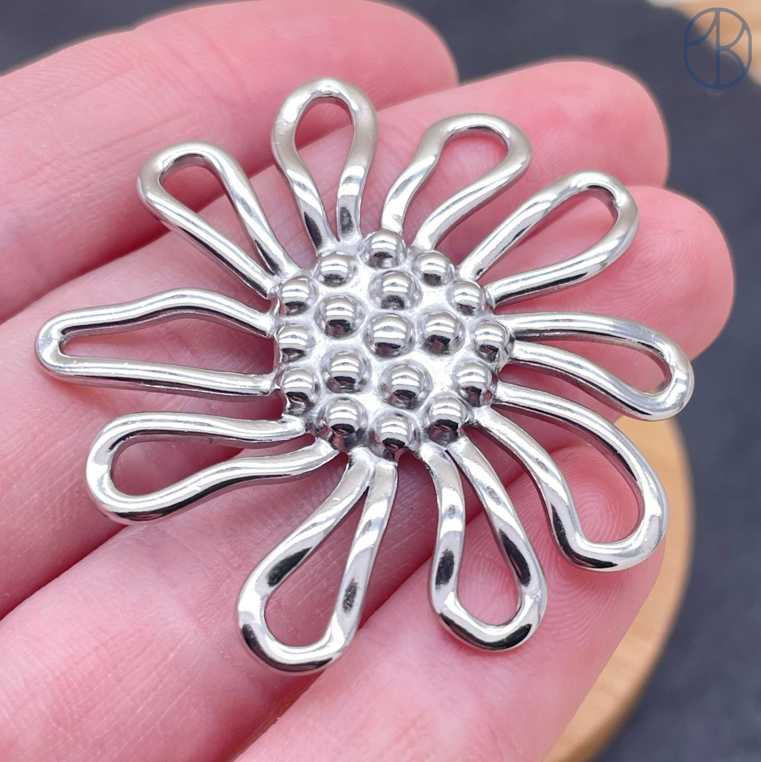 Подвеска цветок №5 сталь 40 мм, цвет серебро