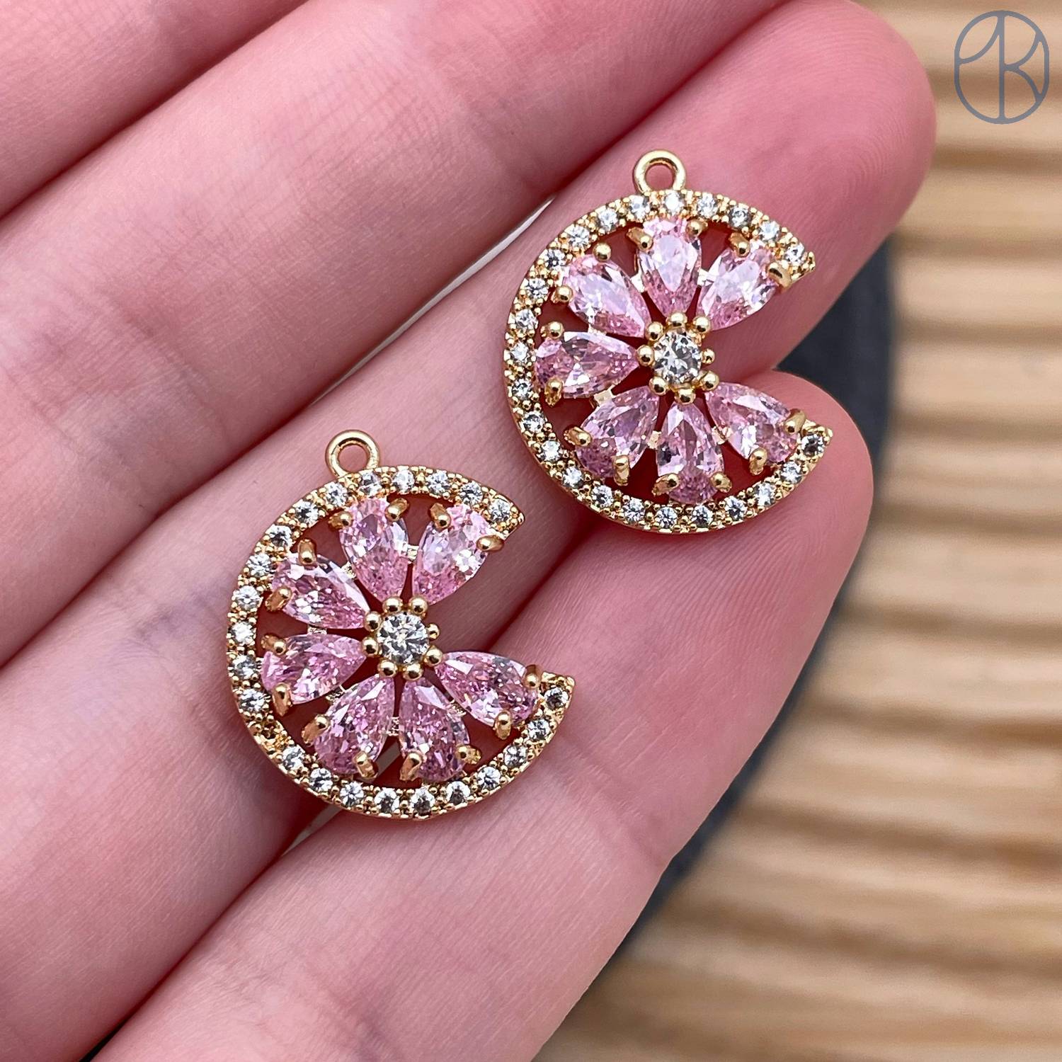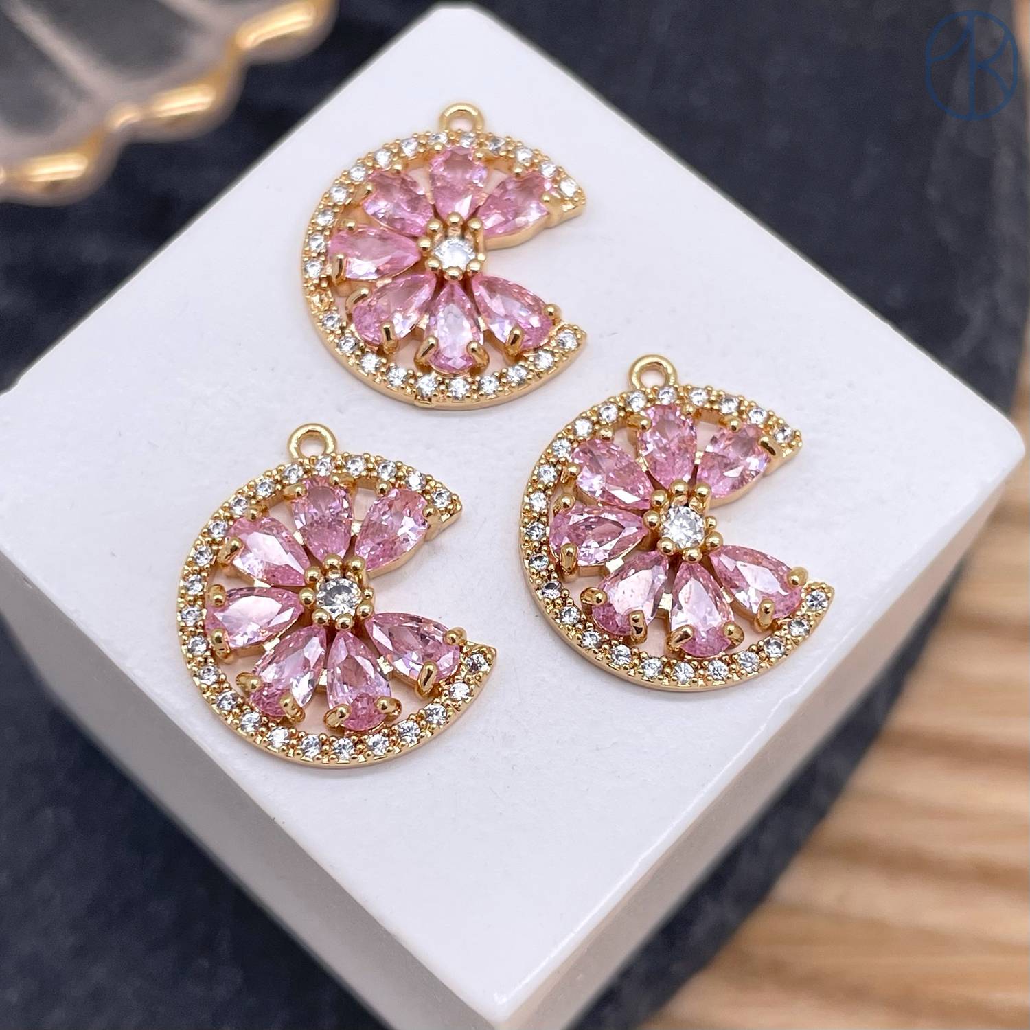 Подвеска цветок розовые цирконы, цвет золото 15 мм