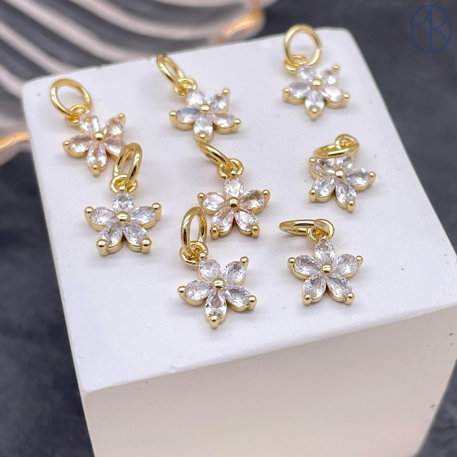 Подвеска цветок цирконы, цвет золото 9х7 мм