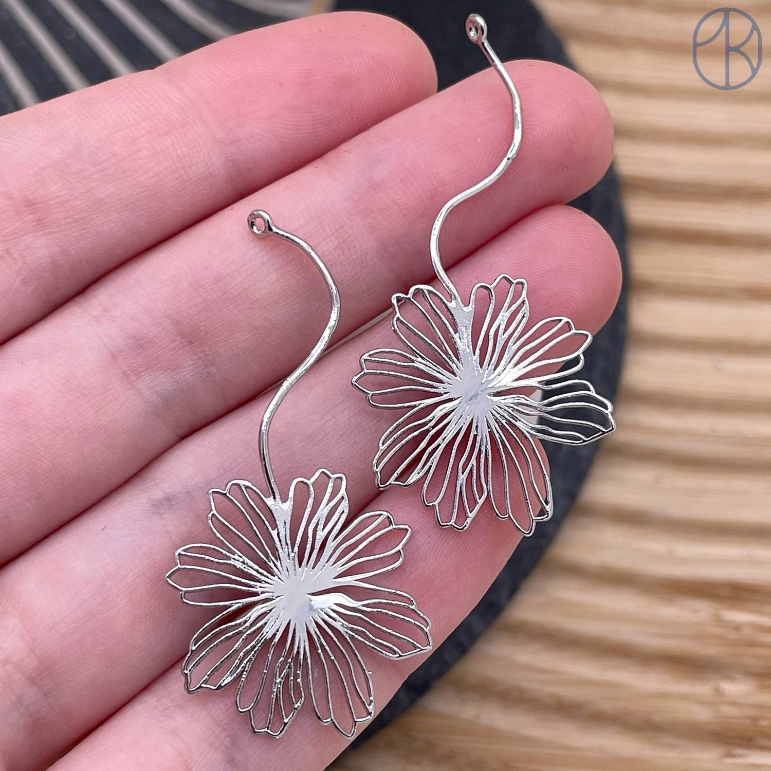 Подвеска цветок, цвет серебро 48 мм