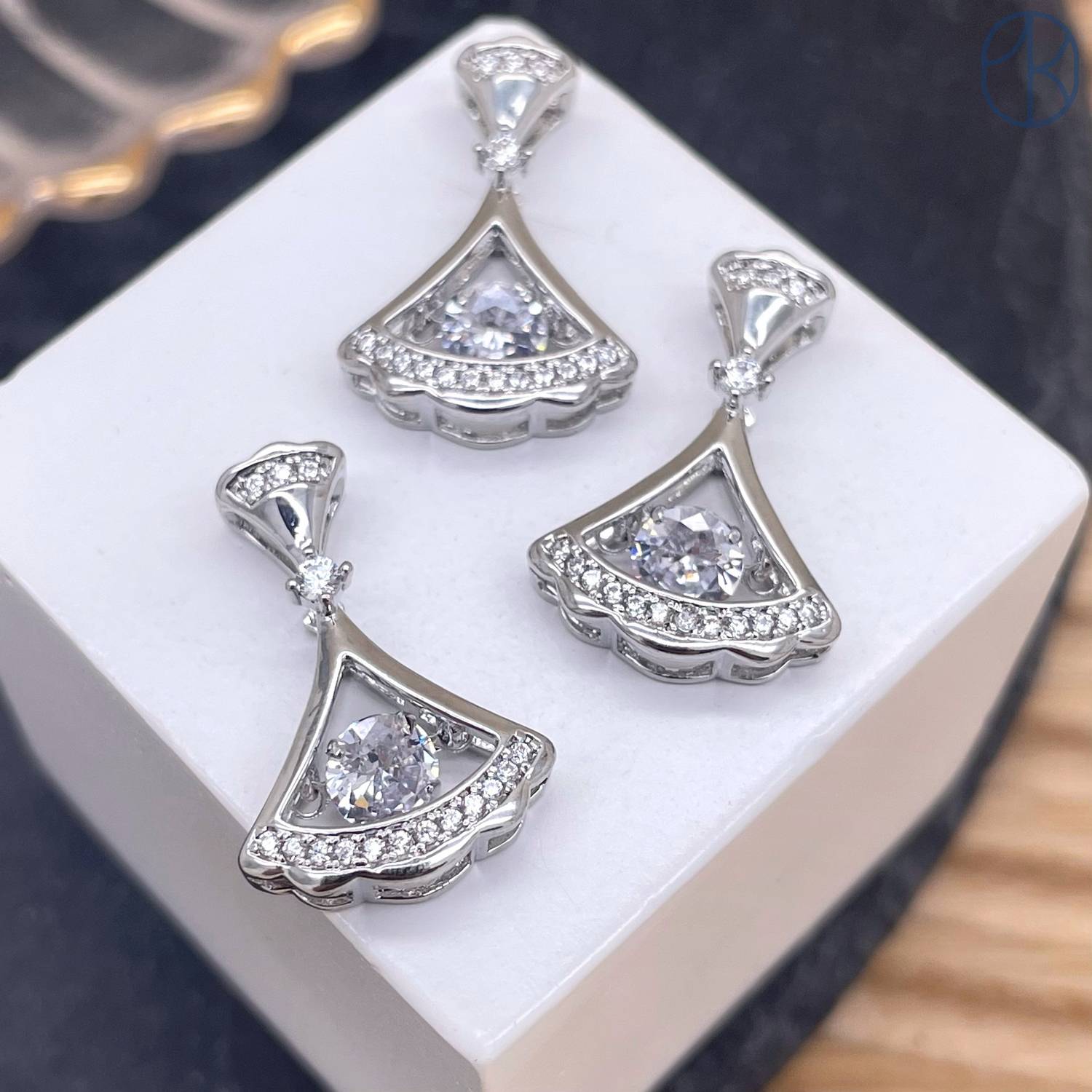 Подвеска веер цирконы, цвет серебро 21 мм