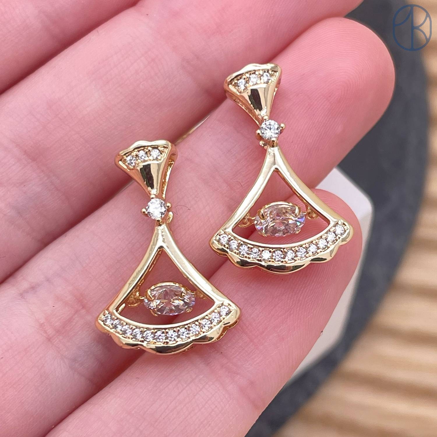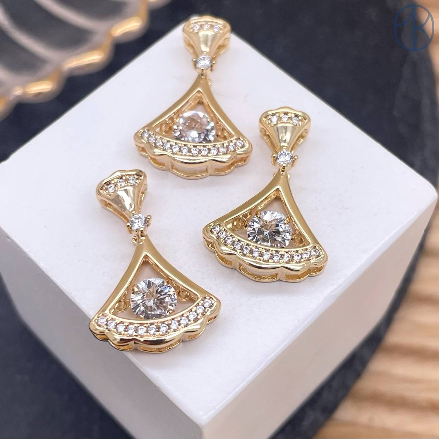 Подвеска веер цирконы, цвет золото 21 мм